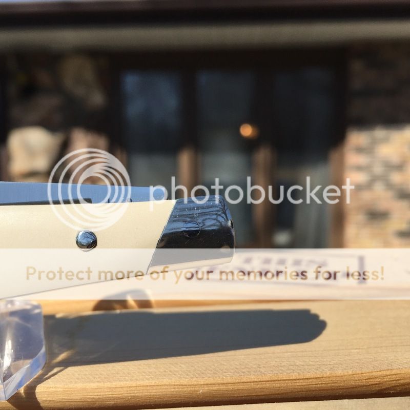 The knife Is Ultra Smooth & Scary Sharp, There Is One Small Nick In The Bottom Bolster On the Pile Side, I Was Able To Capture It In The Last Photo Using The Macro Setting On The Camera Which Really Make It Look Way Larger Than It Is , It's Really Not A Big Deal, This Knife Would Make A Great EDC Especially With The "Killer" BG-42 Blade Steel And The Bos Heat Treating, They Sell For Around $135.00 On The Large Auction Site