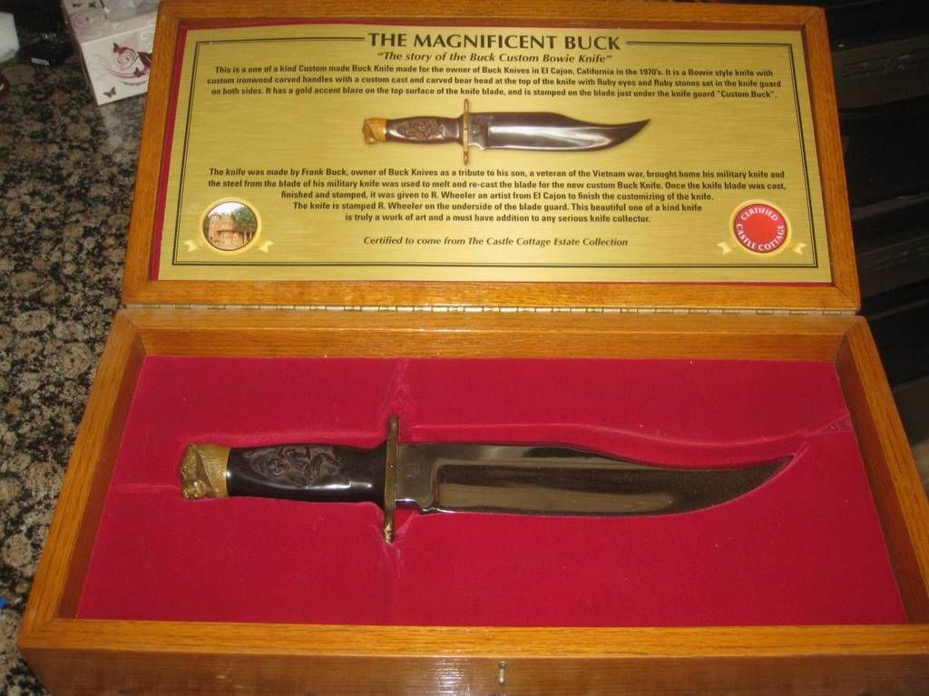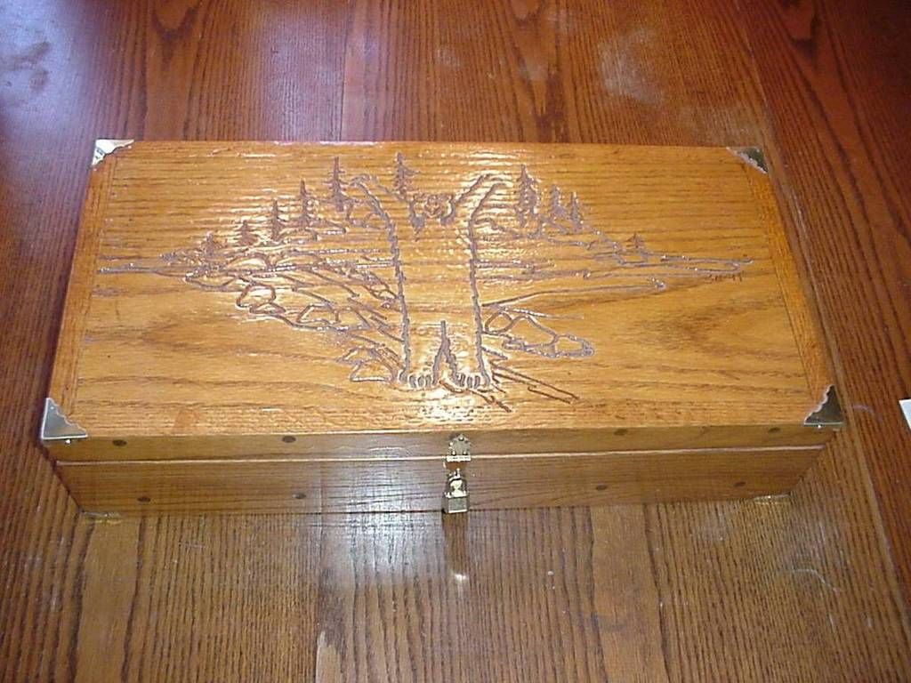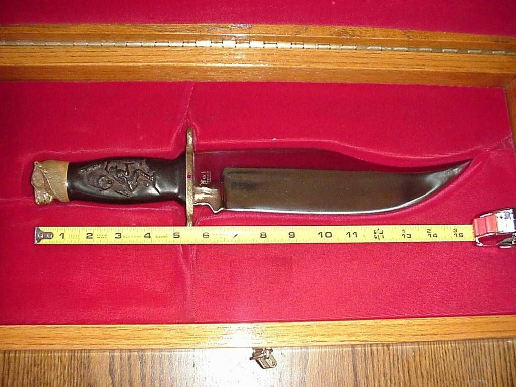 niceI reckon this counts. I made this display for my new 124 out of a chunk of Osage Orange and some antler. It's such a great looking knife. As nice as it looks on the dresser though, my intention is to use it.