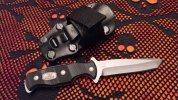 Oh my. That can't be comfortable, but then again, I'm sure it's only intended purpose was to be displayed and talked about. I'd love to know which employee came to work one morning, opened up a jawbone wrapped in paper towels and a Walmart bag, and told the rest of the guys in the shop. "Hey y'all, watch this..." I sincerely hope the Buck employees have an underground annual contest for wildest idea, and they all bring their crazy knives to the office Christmas party and vote on a winner. And I hope this guy won.