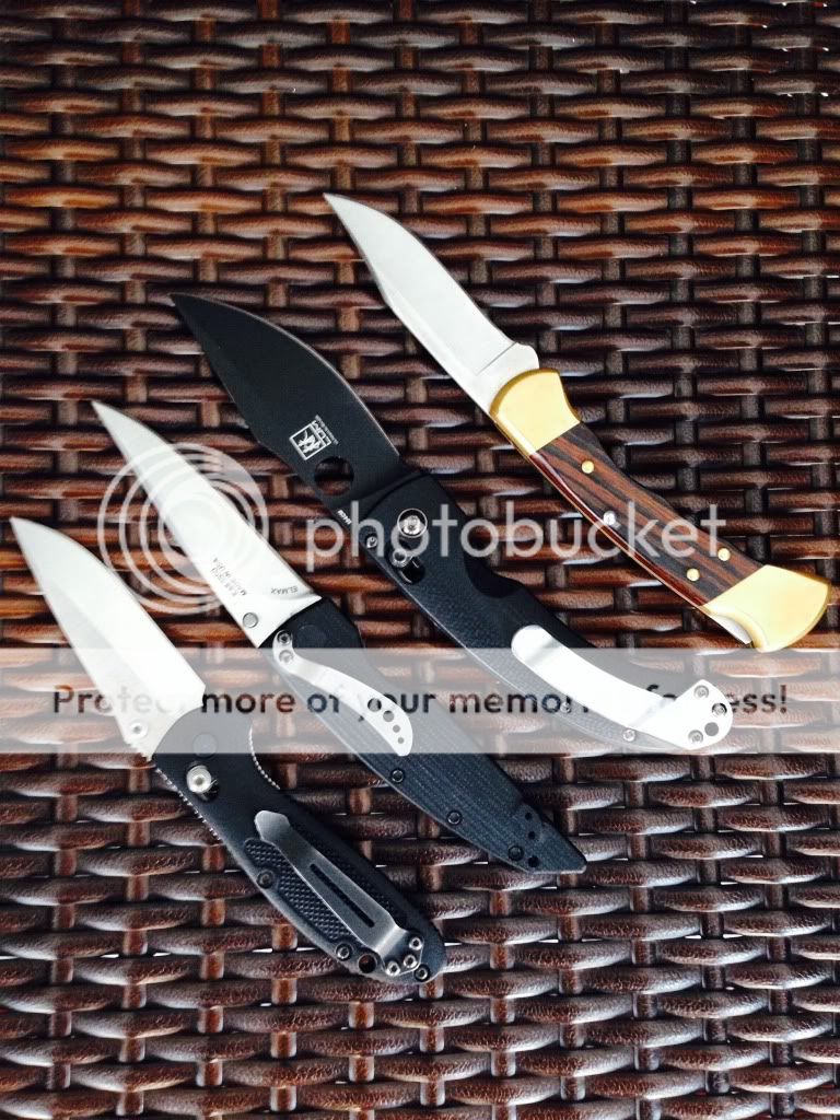 Hey all, selling four knives today. All in awesome condition, but the Mini Onslaught has some scratches near the hole and on the spine. I'll give some better pics of that on request. All have boxes except for the Buck.