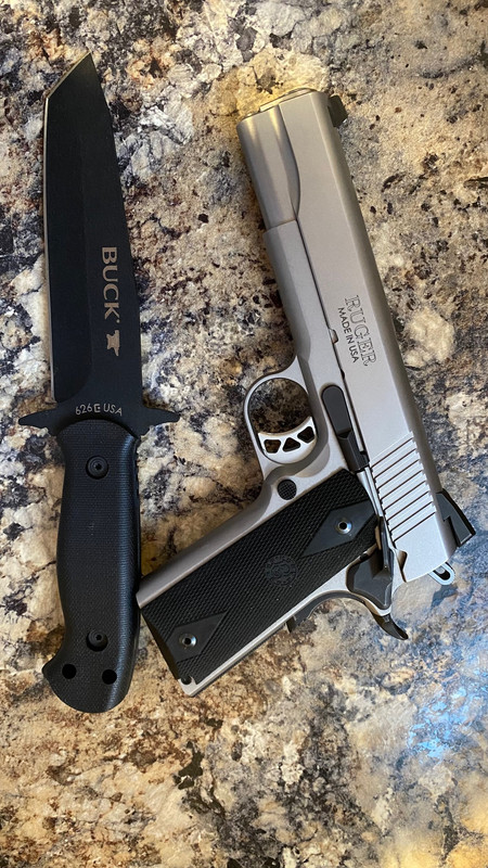 Here it is with a 110 of the same vintage. Too bad Remington didn't maintain the same craftsmanship that Buck has all these years. The wood on this 870 is beautiful and the steel is deep shiny blue. Now, not so much.