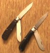 Smokey Mountain knife works has that pattern. A 2 blade, one at each bolster, with a clip and spey blade. DM