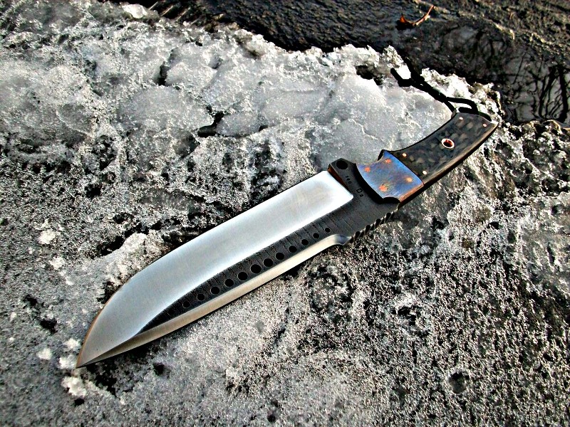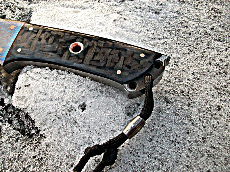 red spacer, carbon fiber handle, copper pins and tubes, Damascus bead ..