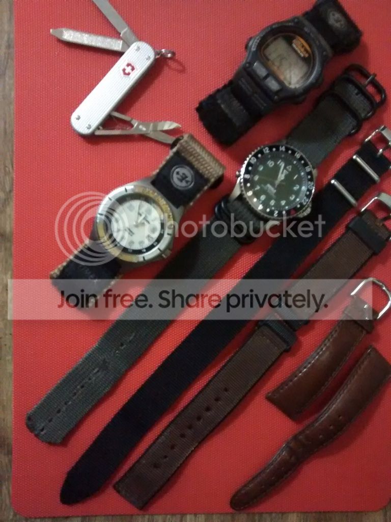 3 Timex watches, all used but still have plenty of life left. All have indiglo and batteries have all been replaced within last 4 months. Extra bands in good used shape. Vic Classic alox in good used shape, sharp blade, scissors work perfect. $SOLD paypal and lower 48 only. Open to knife trades
