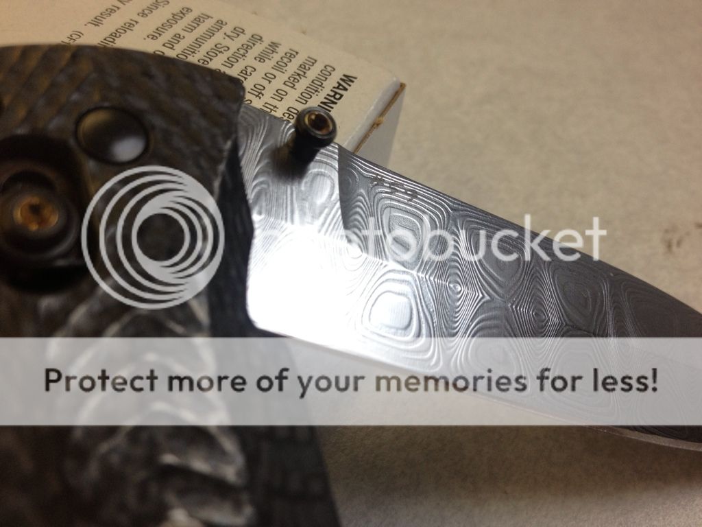 6 - BM Gold Class 530-111 WITHDRAWN - #59 of 150. I am the original owner of this knife. This knife is still in FANTASTIC condition despite being carried and used a little bit. You would be hard pressed to tell it's been carried. Super nice carbon fiber handles with great texturing and milling. The jewels are a nice touch, but not gaudy. The pocket clip was immediately removed by me so it is in unused condition. Blade has been stropped but never sharpened, the fine piercing point is 100% intact, I would consider the knife still @ 95%. There are no noticeable marks in the CF, all the DLC on the liners/screws/thumbstuds/etc looks great (not scuffed or scratched), and the blade has only one mark on it which was there when it came from benchmade. Includes pocket clip, all original packing, box, cards, baggies, etc