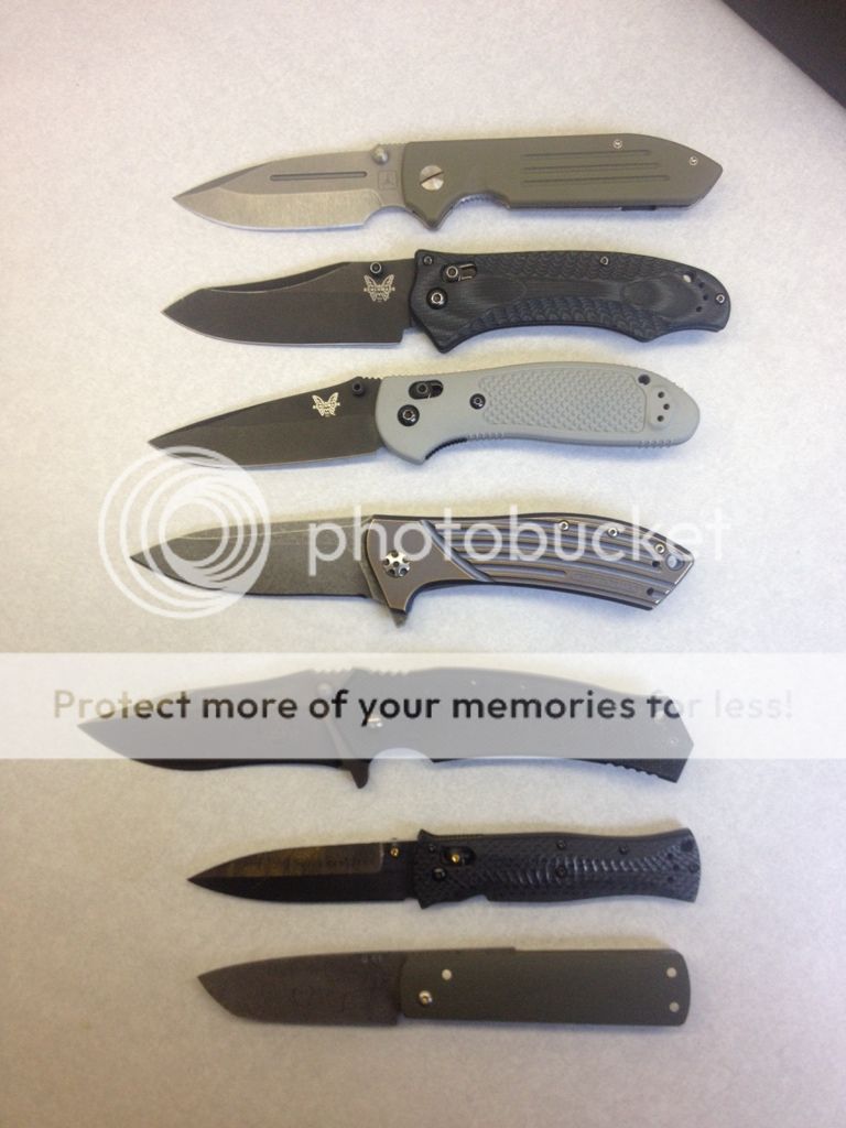 3 - USER BM Grip - 106 of 250 on the blade. this was one of the limited s30v grips @ knifeworks with the light grey scales, a really cool version of the knife. Only been carried and used a bit, blade is wicked sharp and only has a handful of marks in the coating, pocket clip is kinda scratched up.