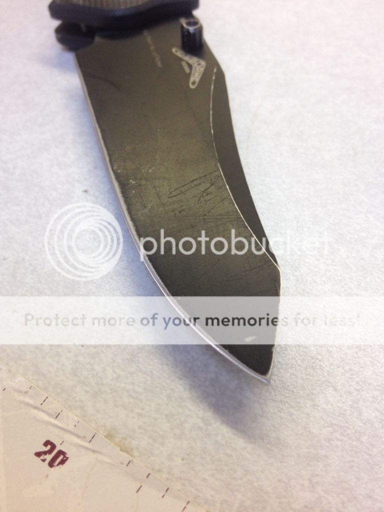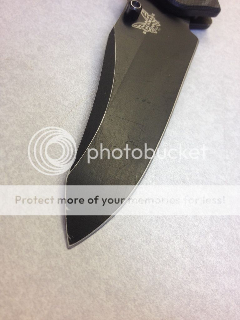 2 - USER BM Rift - this is a great knife @ a good price, still functionally at 100%, the only "damage" is to the black coating of the blade. It was a good companion a few years back, but has been neglected lately, looking for a new owner to use it hard