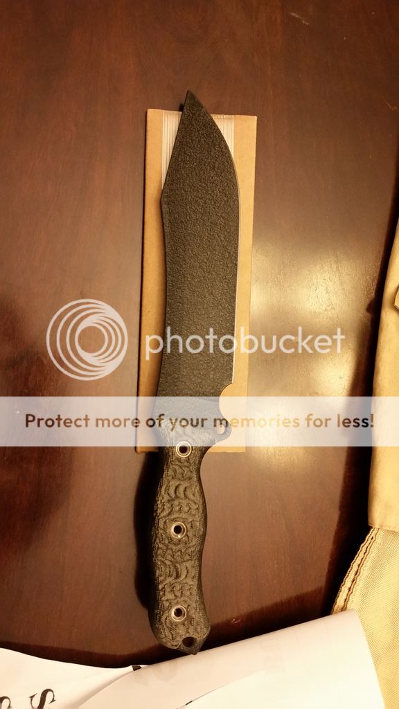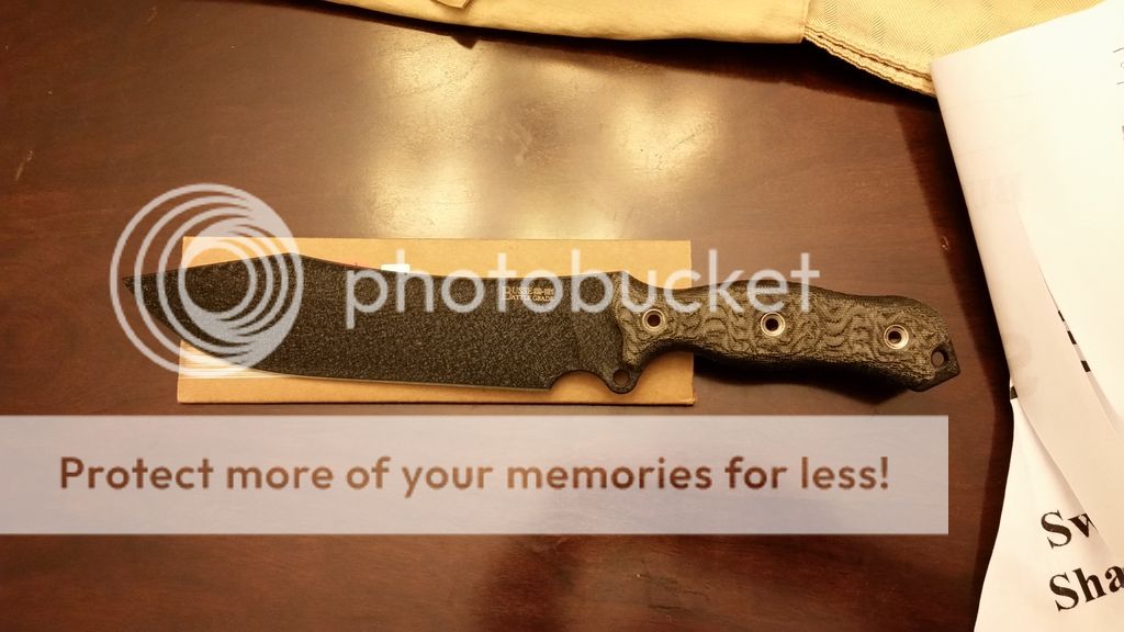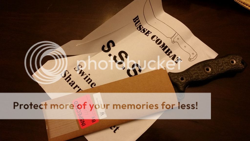 Picked up two, but I really only "need" one, so I'm keeping the Tanker/Maroon, and putting up the Black/Black Canvas for sale. Opened to check them both out, and then back in the cardboard. Comes with cardboard sheath, and Swine Shaving Sharpness Sheet.
