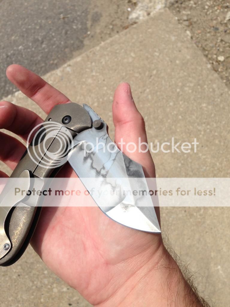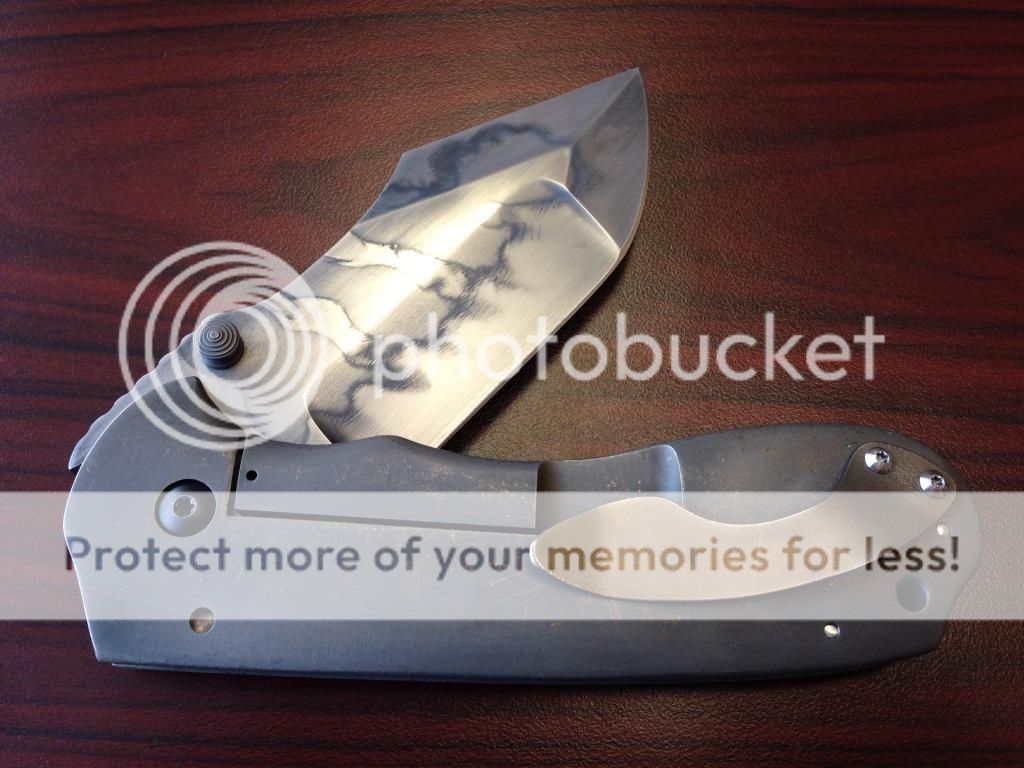 Hello Blade Forums, I'm not carrying anymore and could use the cash for other things so up this guy goes. This Tangent is the smoothest Burch I have owned with the best hamon bar none. Features a compound grind, contoured and bronze anodized titanium framelock, copper stand offs, dual thumb studs and teflon washers. I will add to the sale 2 Burch patches and a Steel Flame Burch tag. Comes with the birth card as well dated March/2014. The pocket clip has one mark on it and the blade has a few minor very faint marks which were hard to capture in photos. $old, no trades. Paypal only. Thanks for looking!