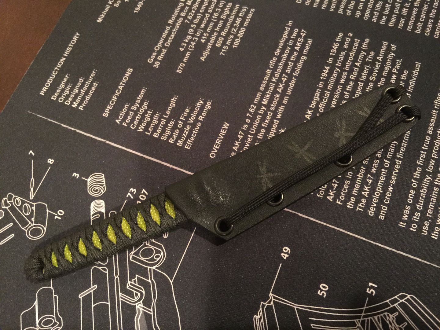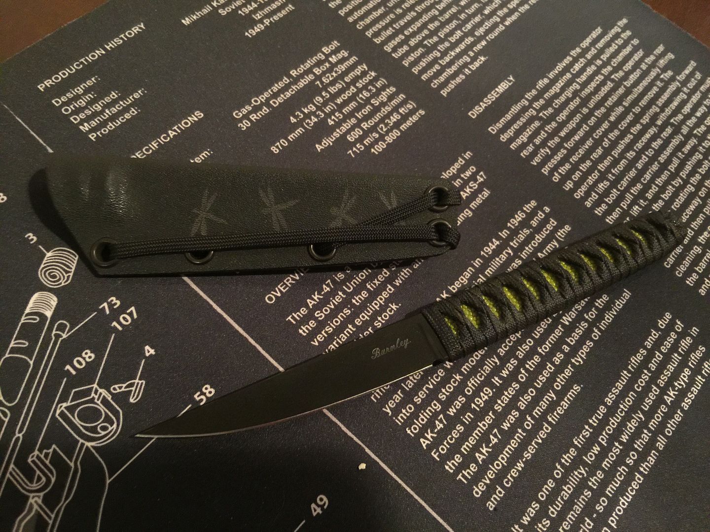 Up for sale is my Burnley Knives Kwaiken in A2. Black blade (gunkote, I believe?) with green ray skin under a black wrap. Kydex sheath has dragonfly graphics. This is in excellent, like-new condition. I carried it a handful of times, it MAY be unused, but I can't guarantee it, as I may have cut a couple of pieces of paracord or similar. The only wear I can see is on the transition edge of the spine, there's a little bit of kydex wear to the coating, but that's it. I just don't carry this knife, so I may as well free up the funds. Asking $250, price includes Priority CONUS shipping and insurance. I guarantee you'll be pleased with the condition, this is a nice little hideout knife.