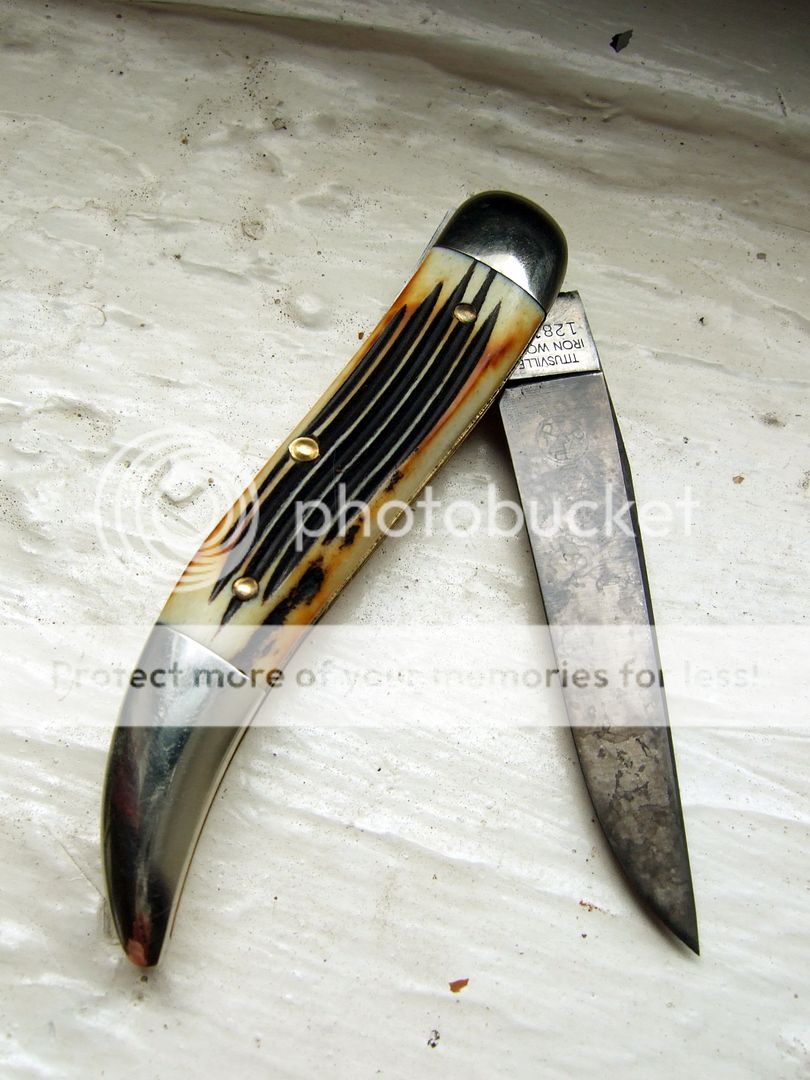 Everyone's "eye" is different when it comes to traditional knives, but two of my favorite looks are burnt or torched covers, whether stag or bone, and carbon blades with patina. So when the two are combined, I usually just go, "Wow!" Please post photos of your traditional knives with burnt stag or burnt bone covers that have blades with patina or bluing or have been etched in some way. I'll start.