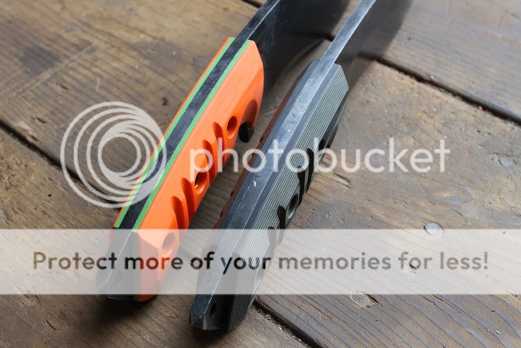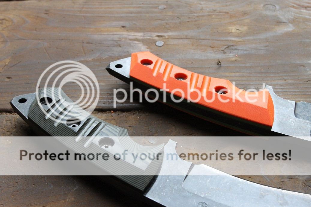 first one is in Orange G-10 with a toxic green G-10 liner (SOLD)