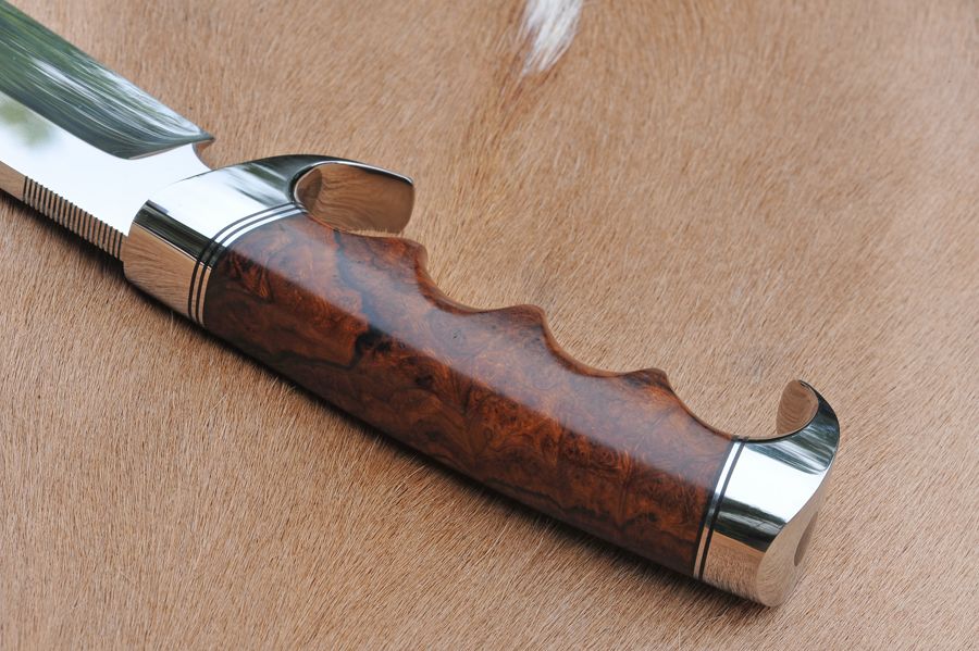 One in Red Bush Willow and the other Giraffe Shin Bone, both with Bohler N690 full tang blades.