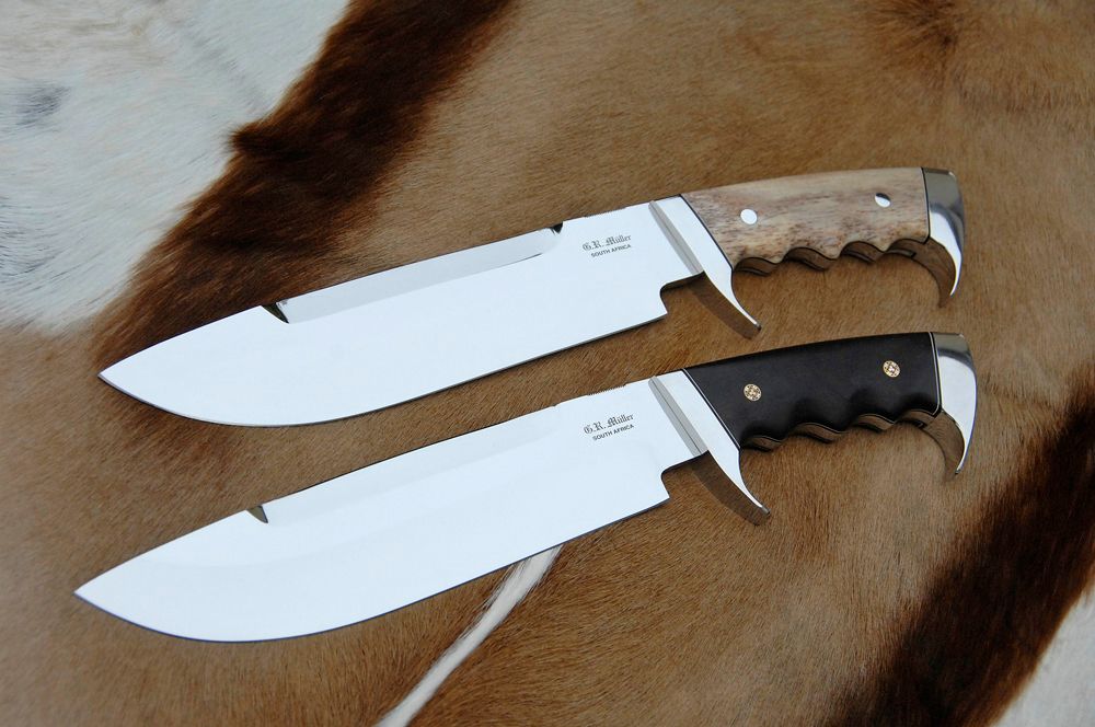 One in Red Bush Willow and the other Giraffe Shin Bone, both with Bohler N690 full tang blades.