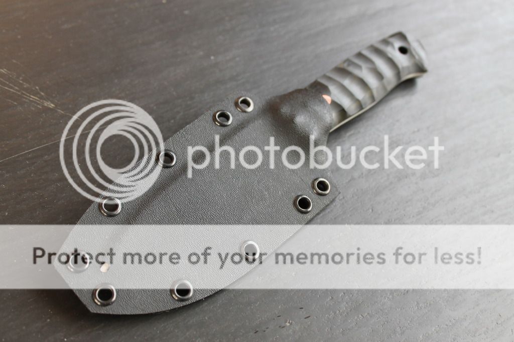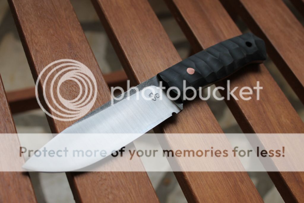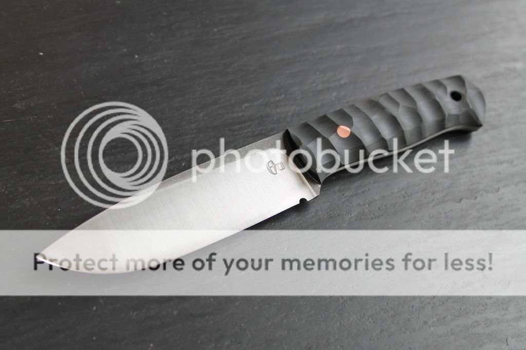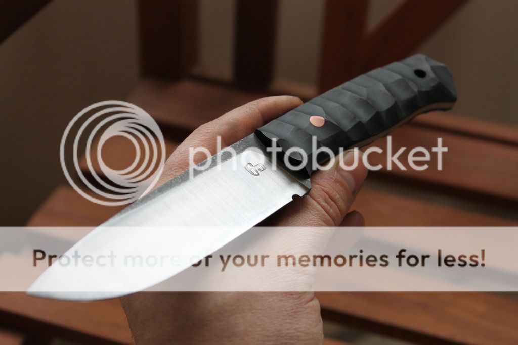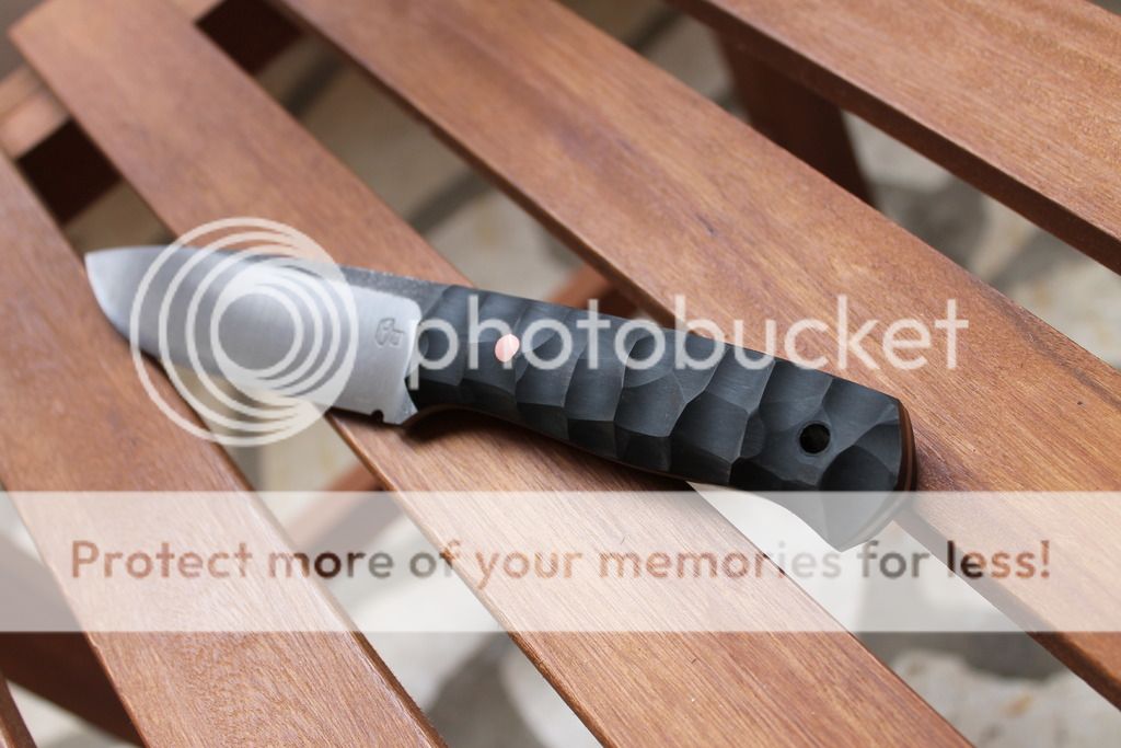 Handle: Black paper micarta with random textured finish, copper pin and carbon fiber tube