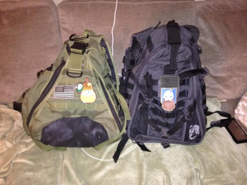I have a Maxpedition Monsoon and like the sling bag for around town, in and out of the truck type things, but in the field I was sore after a half day. I just got this, a 5.11 Triab 18 which is similar to the Monsoon, but has a hidden strap so it can be worn as a sling bag on either shoulder or as a backpack. I've only had it since monday, so I don't know how the long run will be, but the quality is excellent and it seems to solve all of the dislikes I had about the Monsoon. I did like the monsoon's snap front pocket to throw a sweatshirt in but this has a "y" strap on the bottom for a similar effect. We'll see how that works out. Also attached is my new Ratweiler.