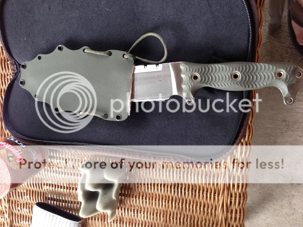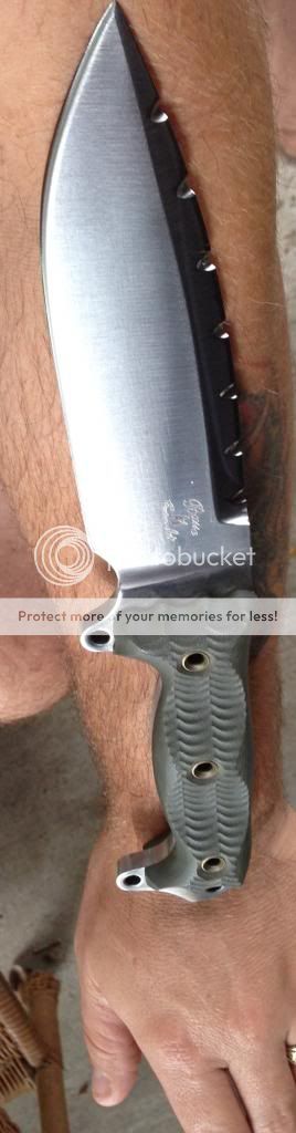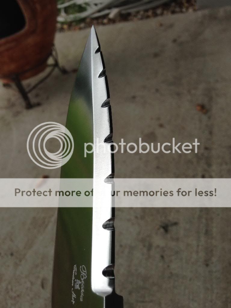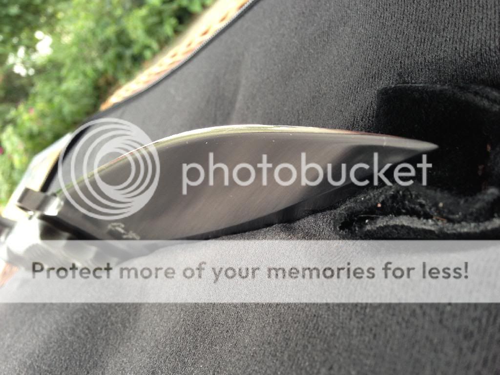 I haven't seen many of these. Just wondering what you guys think. It's a safe queen, and the sheath is show only, lined with moleskin. It is immaculate, never cut a thing, still factory fresh. I'm not a big knife guy, but picked this up a few months back. And I really don't give a crap about it. In fact I may toss it in the trash unless you knife "gurus" can shed light on it.
