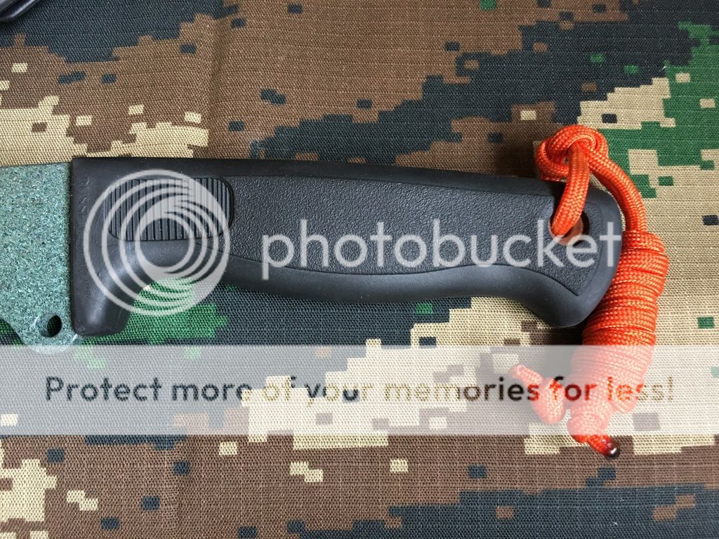 Comes with Mashed Cat sheath + nylon belt loop that secures the blade with snap button (feels like Pull The Dot) + safety Orange 550 lanyard.