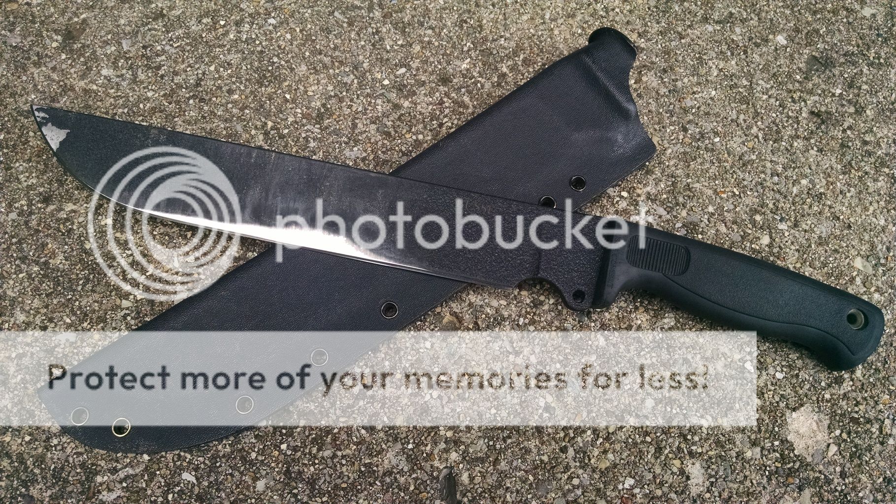 Up for sale is a used but not abused Basic 11. I got this off the exchange a couple years ago. I haven't used it much at all. The coating is worn some as seen in pictures. It includes a nice fitting kydex sheath by unknown maker.