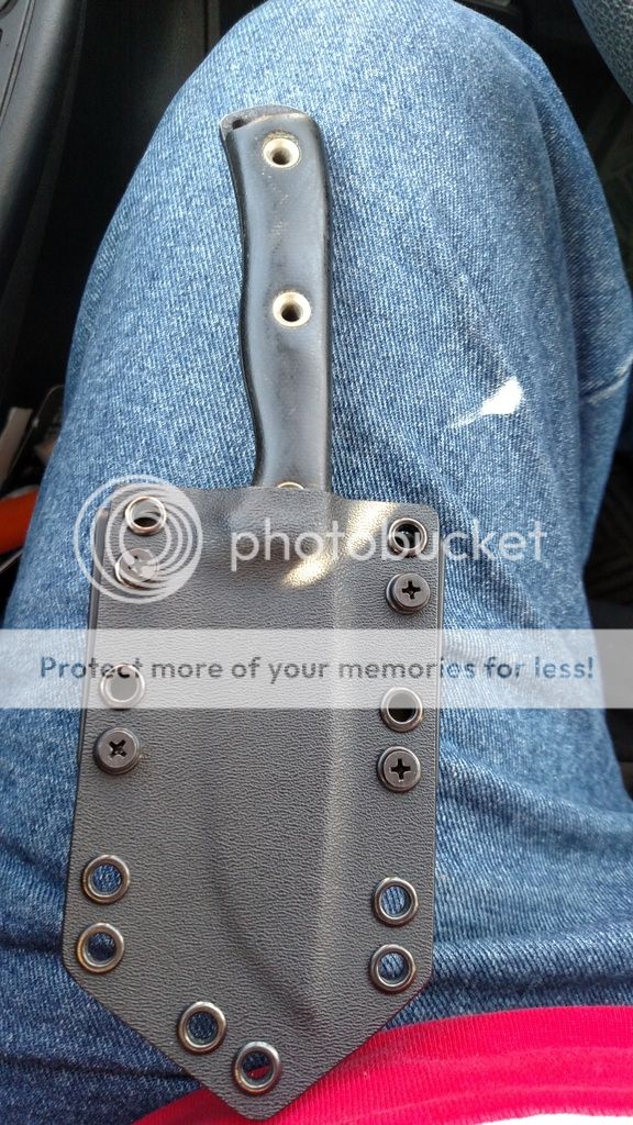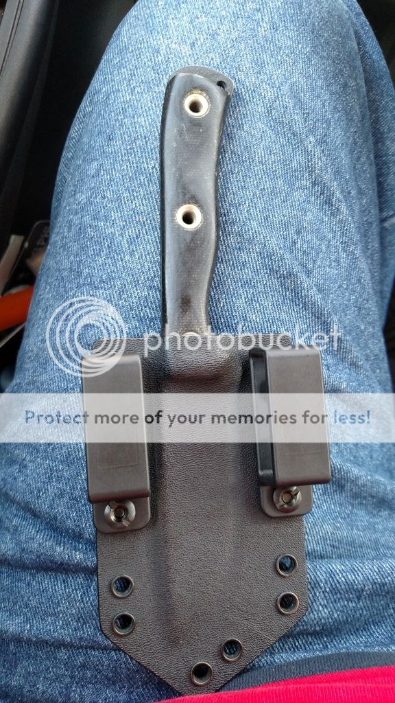 I've got a basic black on black BG MS with hand shaped micarta scales and custom kydex belt sheath. SR101 steel. Can't hardly even tell it's been used.