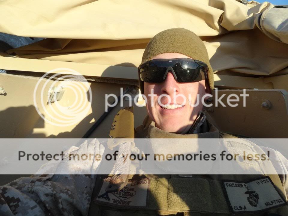 Here is one on my cousin's vest. Riding in the .50 turret on patrol. It was donated, including the custom sheath by Buy Brown. The good hogs here, and the kind folks at the shop got it to him in time for deployment. It came have well used, and missing a goodly amount of finish!