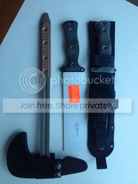 2. Never used Team Gemini Light Brigade Competiton Finish with black canvas micarta. Comes with nice spec ops sheath. The finish on this one is perfect. No machine marks.