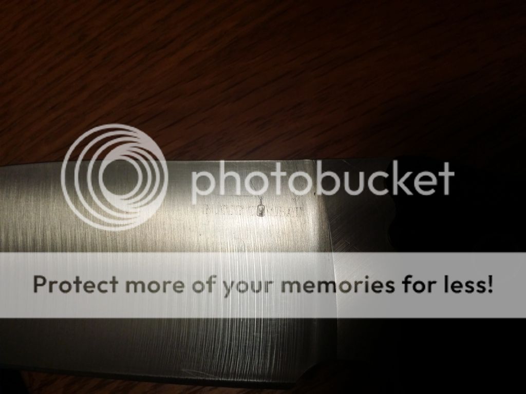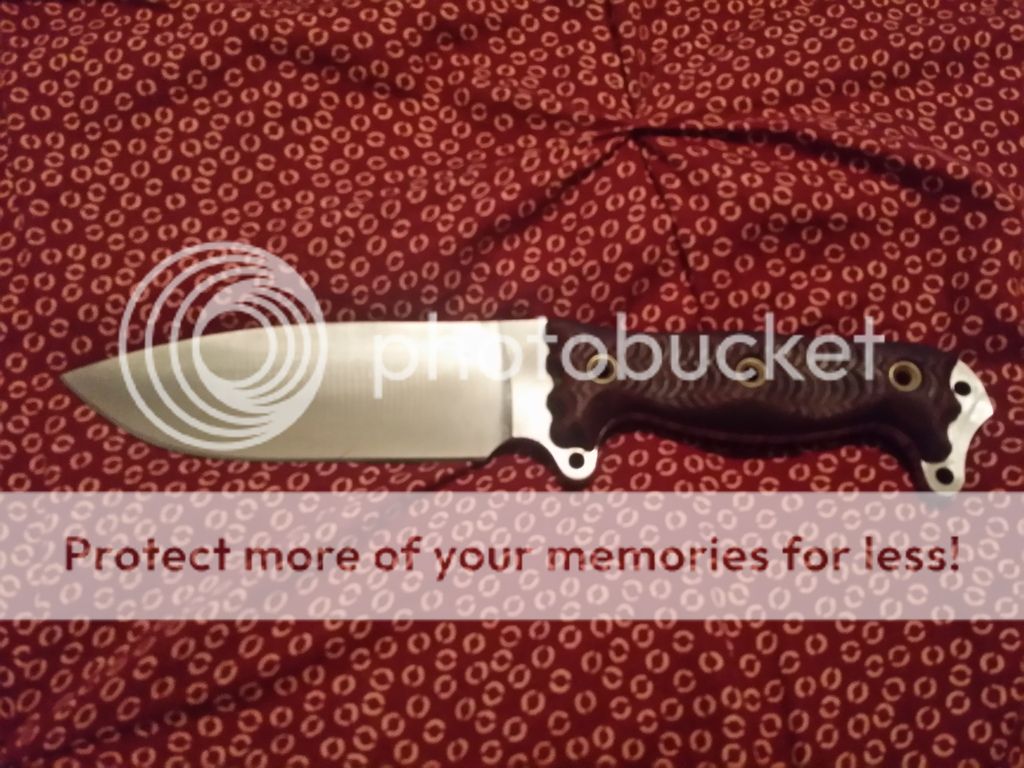 This is the old snake print ash from the exchange, after stripping it I found what looks like a big finish underneath. The sheath was duracoated flat black, still leather lined. The handles were actually tan canvas micarta and they look dark red, pretty cool... There is one scratch down the none logo side from something, full disclosure.