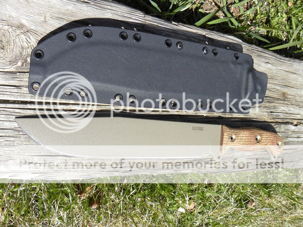 For sale (US only) is my Busse Bushwacker Mistress (BWM). INFI steel. This was sold to me as lightly used by the previous owner and I have not used it. There is minor smoothing of the coating which I have attempted to show in the photos as well as a chip in the paint at the tip. Original edge has not been sharpened. This comes with a black Mashed Cat kydex sheath and Tek-Lok is included. This was going to be my pack set up but I never got around to it. Specs are below.