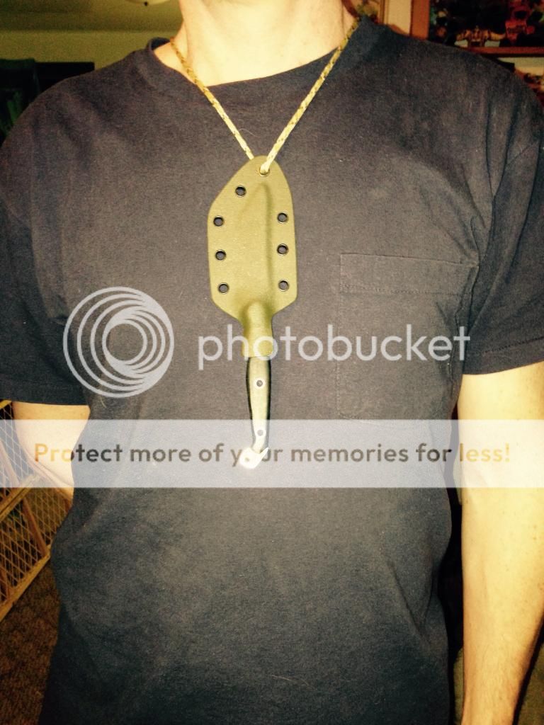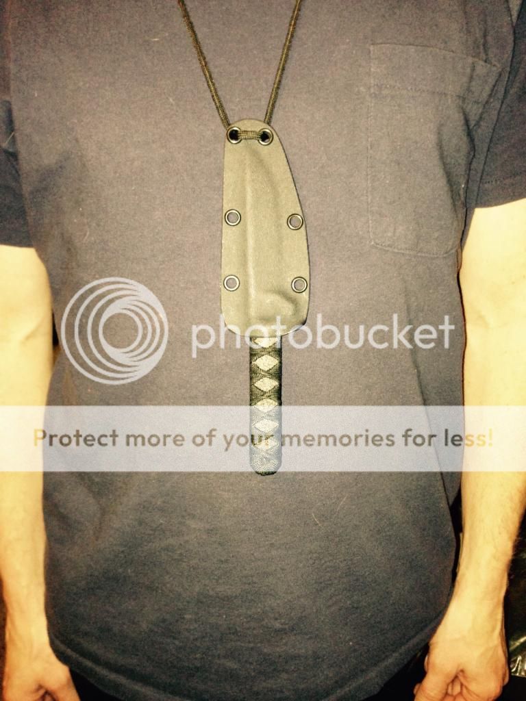 Hey guys, just curious if anybody here wears their Busse/kin on a neck sheath? Got any pics? A google search found mainly the smaller blades with skeletonized handles. I have a couple of Murray Carter neck knives which I absolutely love and have been thinking a Rodent 3 or Mean Street would be cool worn this way