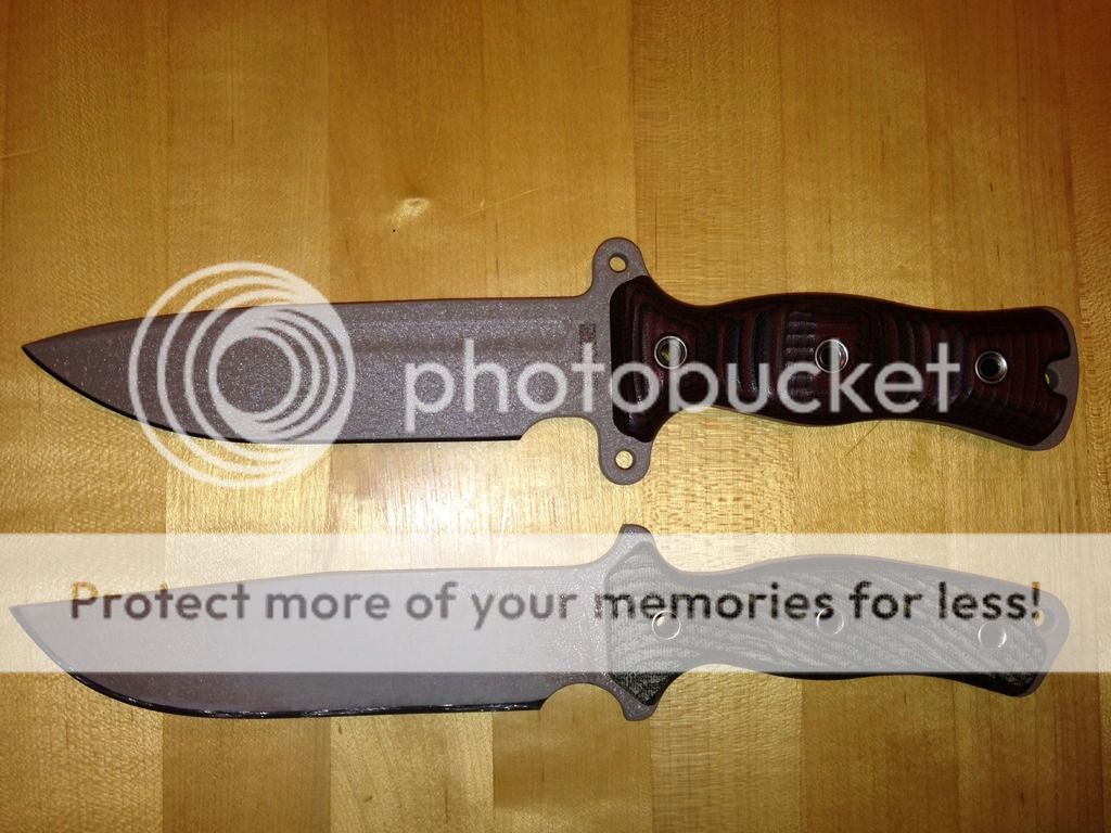 The difference in the grip scales is drastic, though. The R6 is subtly contoured, with out much of a drop at the rear, nor flare. This makes it difficult to chop with it very long. Not due to hot-spots. It is quite comfortable in that respect. But the grip strength required to prevent it slipping out of your hand is high, especially if you are wearing gloves. I have tried several types of lanyard configurations, none of which are satisfactory in my opinion. I love the knife, and for quick sessions of chopping, it works great. It can easily take of branches about a half-inch in diameter, on medium-hard, green wood.