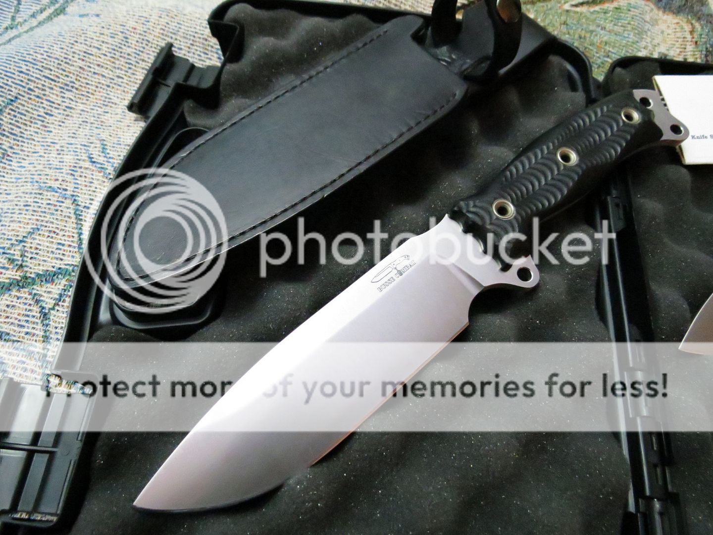 Up for sale is a satin and black G10 SFNO with a Dwayne Puckett Armoralleather sheath.