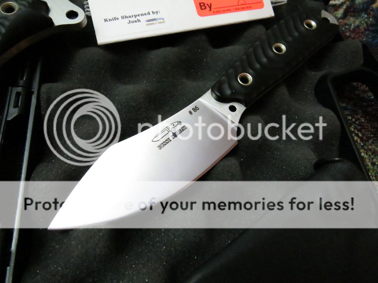 Second is a like new satin and black paper micarta Busse MUK LE #86. Includes a black azwelke kydex sheath. Includes original cardboard sheath.