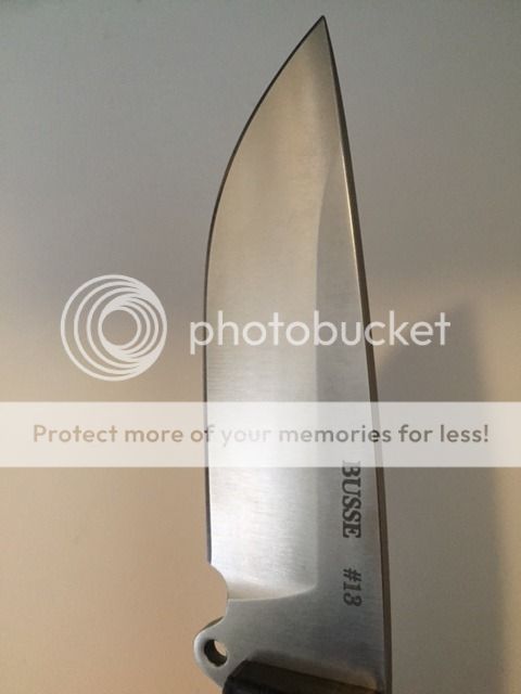 Up for sale again is my unused Busse SOB LE #13. Previous Buyer backed out at last minute. Handle is black paper micarta. Was purchased from original buyer as new, and has not been used by me. Non-logo side has very faint scratch, apparently from sheath insertion, that can only be seen at particular angles. I tried my best to capture it in the photos below. Feel free to ask questions or ask for additional pics.