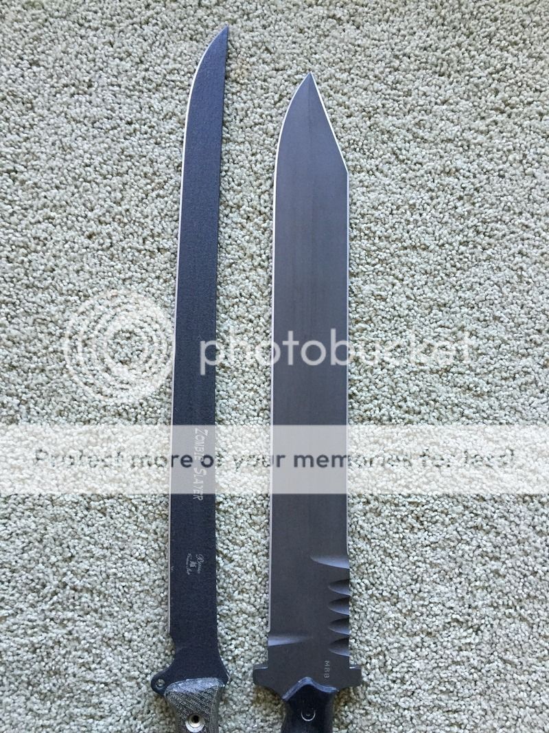 Lastly I want to give props to a new company on the heels of some of the top knife makers. The Miller Bros Blades. So far I own two of their pieces, the MBB-2 short sword. What a beast. Solid and well crafted. I love the design and it is a force to be reckoned with. And I just recently had them custom make me a 9 inch saw back bowie and it is no joke. This thing is beautiful and constructed of CPM-3V. solid apocalypse knife. Im not trying to plug other companies of the Busse forum but these guys have great products..Very innovative and hard use products.