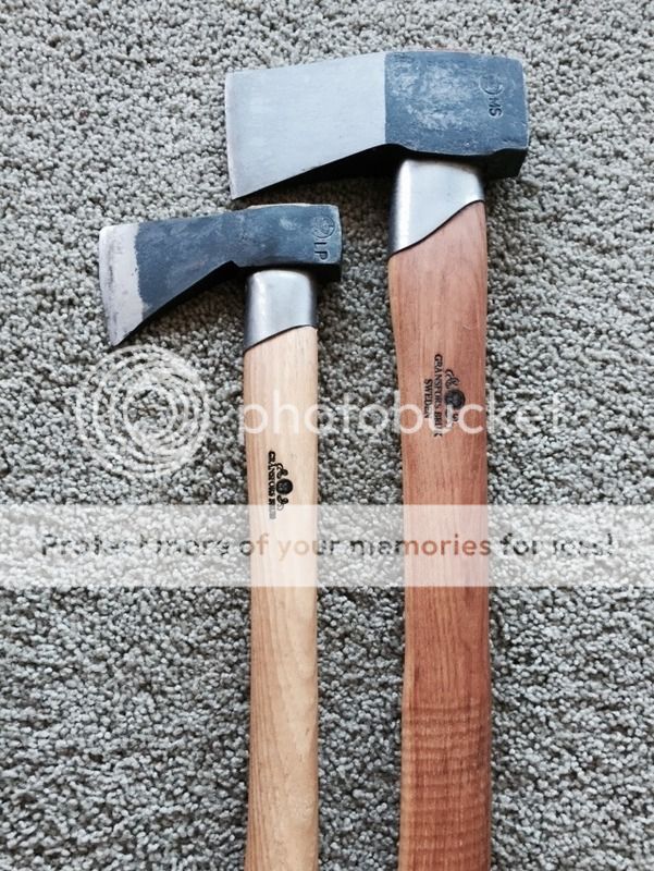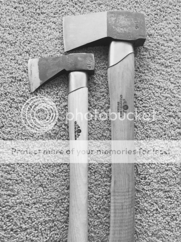 I also recently started buying some GB axes. I own two larger ones not shown here. The large splitting axe and the Forrest Axe. But recently I picked up the splitting hatchet for car camping. and the Outdoor axe. This survival axe is so small and light that it is no doubt coming on my next 40 mile backpacking trip. Great craftsmanship on all these. Anyone who has one knows.