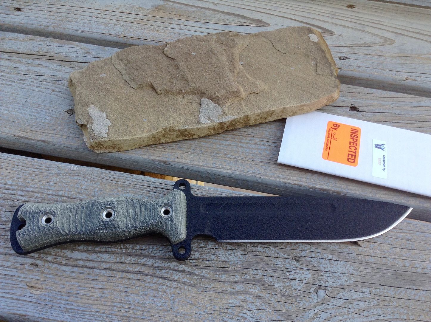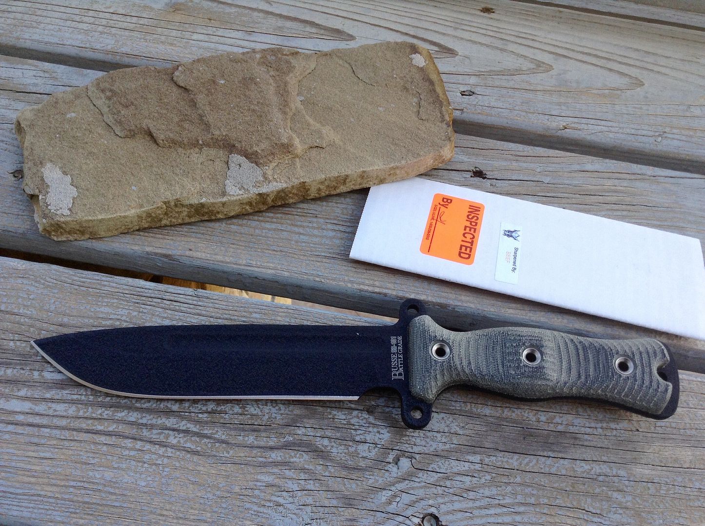 First is a New, unused Busse Team Gemini Battle Grade in black with black canvas micarta. $300 shipped in the USA. I will also include the pictured brown leather sheath that was given to me with a TGLB a while back.