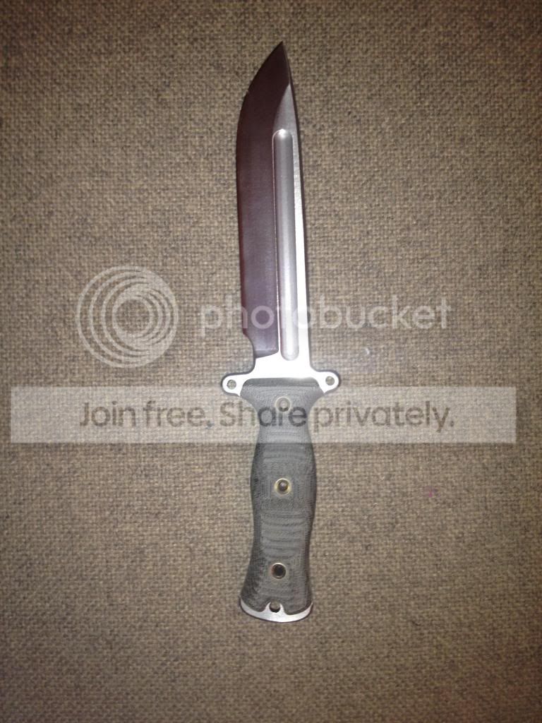 I have a mint condition Busse Team Gemini with the black canvas micarta handles and competition finish blade. Comes with a black Spec Ops Brand combat master sheath.