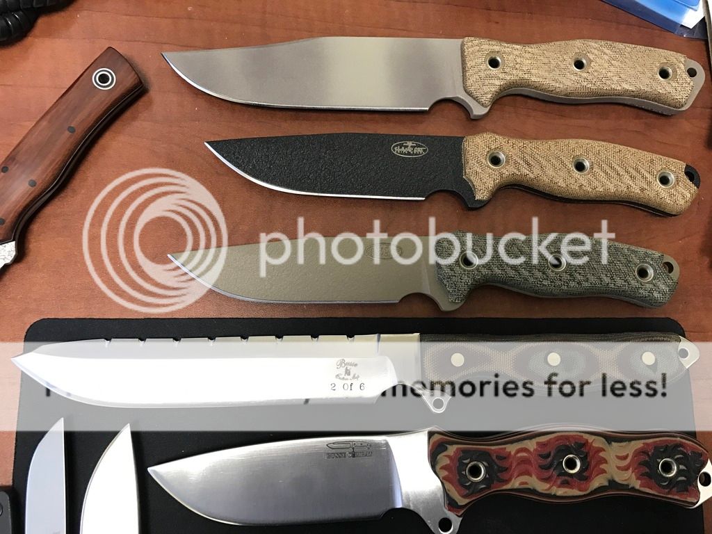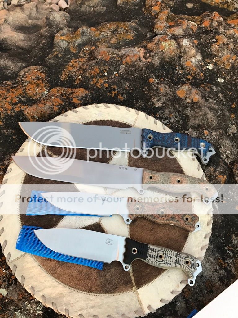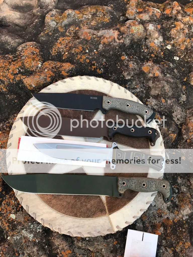 11) Busse Basic 4 LE Set. (I only have one pictured, but for now I am only selling as a set, Infi steel. One fatty and one anorexic so all bases are covered for a mid sized camp knife set. Blended convex edge $579.00 for both SOLD!