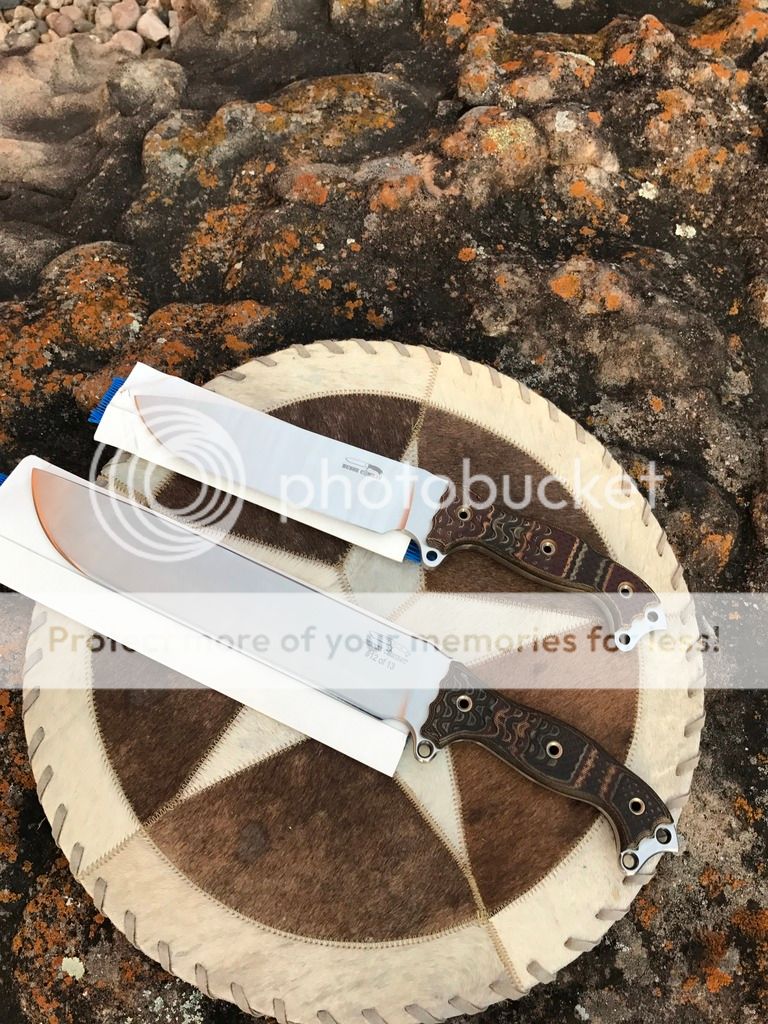 Battle Sharks in Infi Steel, Corrugated Bevel Technology perfect for stripping projects. Closest thing to a Battle Pappy at the moment. Gray with Green and black g-10 (SOLD)