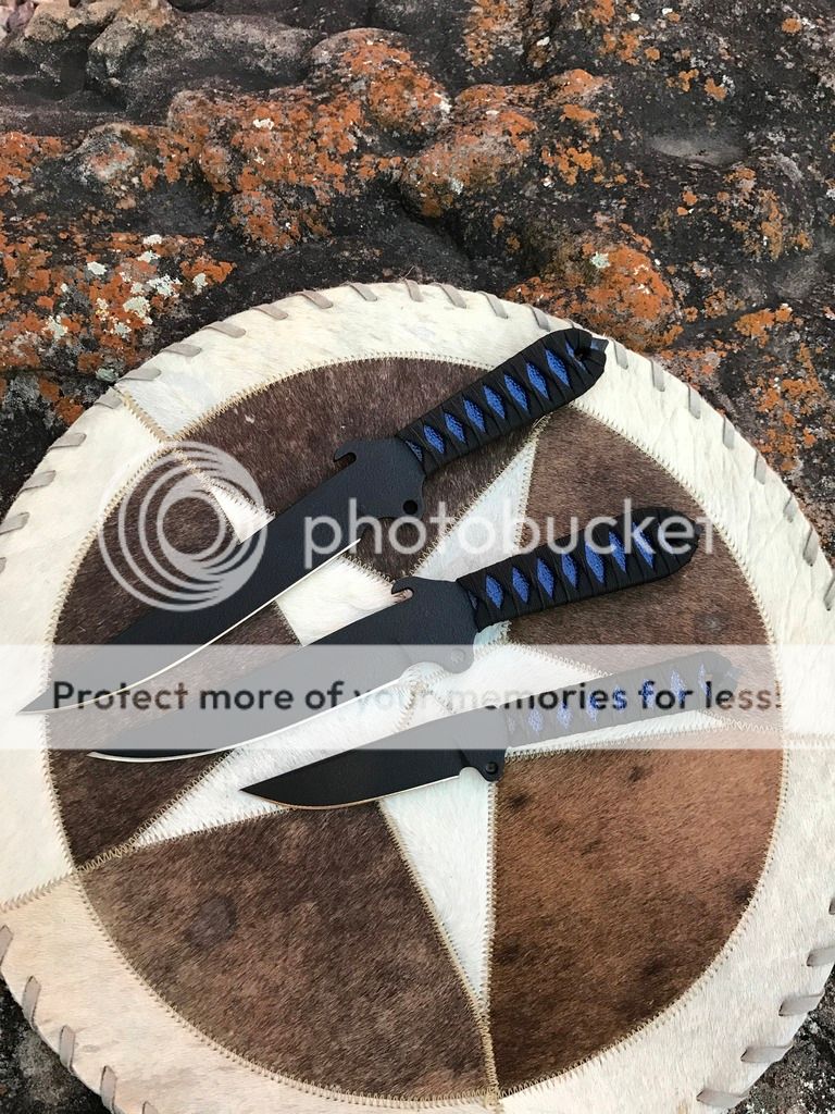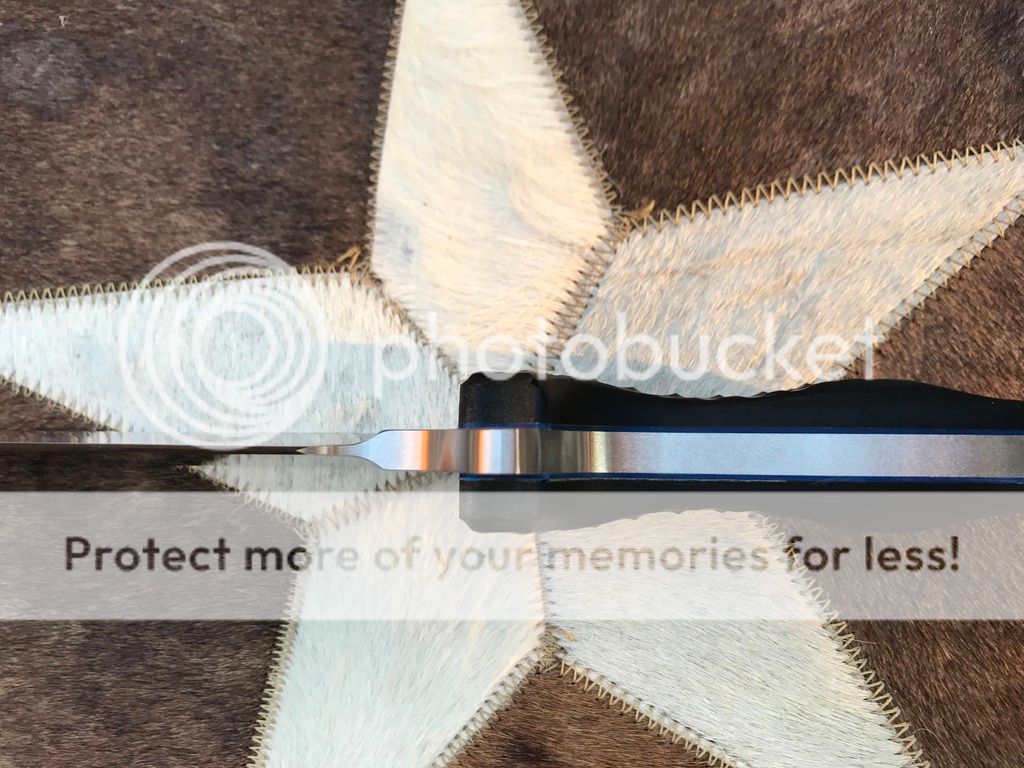 Grail Tuxedo Fusion Battle Mistress FBM with Black paper handles and blue liners!! .28" thick. Not many of these in minty condition left. The only black paper one I've seen unless i missed some for sale on here. Blended Convex edge $1299