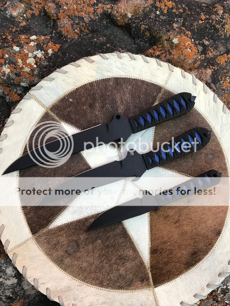 One of a kind PBF set. I am not the original owner. As far as I know the name of the craftsman is unknown but every one I have talked to said the work is superb. The cost of materials and labor in the mid 2000's is estimated at $1000 for the handles so who knows what it would cost in 2017 for the same quality. I'm guessing $1600 range. Black silk and dyed blue rayskin. Very tightly wrapped. Sold as a set only. $2999