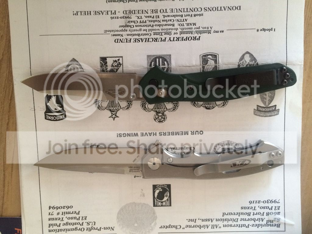 The 940-1 is IMHO benchmade best knife this knife is sweet looking with great blade steel . The revers tanto tip work great for stabbing and then cutting cardboard . The blade is a bit long for my need but for what ever reason I don't mind it on this knife . The edge retention has been good still sharp . But not as sharp as the caly . The 940-1 has the Best carbon fiber handle on a knife by far . They look sweet and feel like a200+ knife . Has minor side blade play .