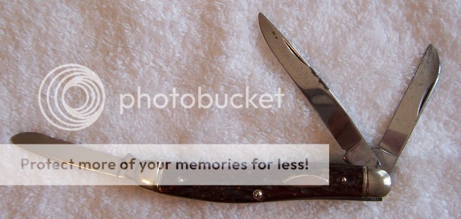 I have lots of modern folders as well as some Opinels, but I always wanted a 3 blade traditional folder. Most of what I found locally were either too small and/or too rusted/chipped/hard-to-open. Well today I picked up a Camillus De Luxe Premium Stock Knife in used but working condition with only standard patina and edge wear.