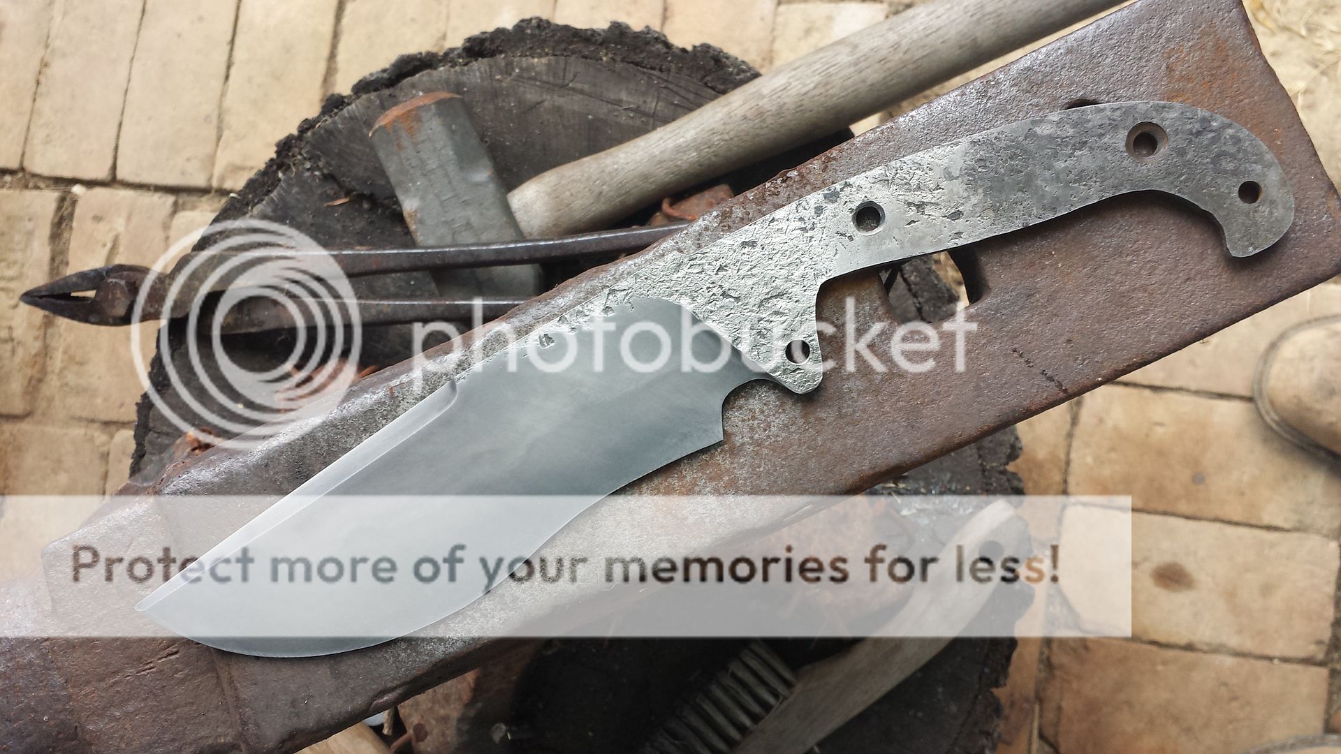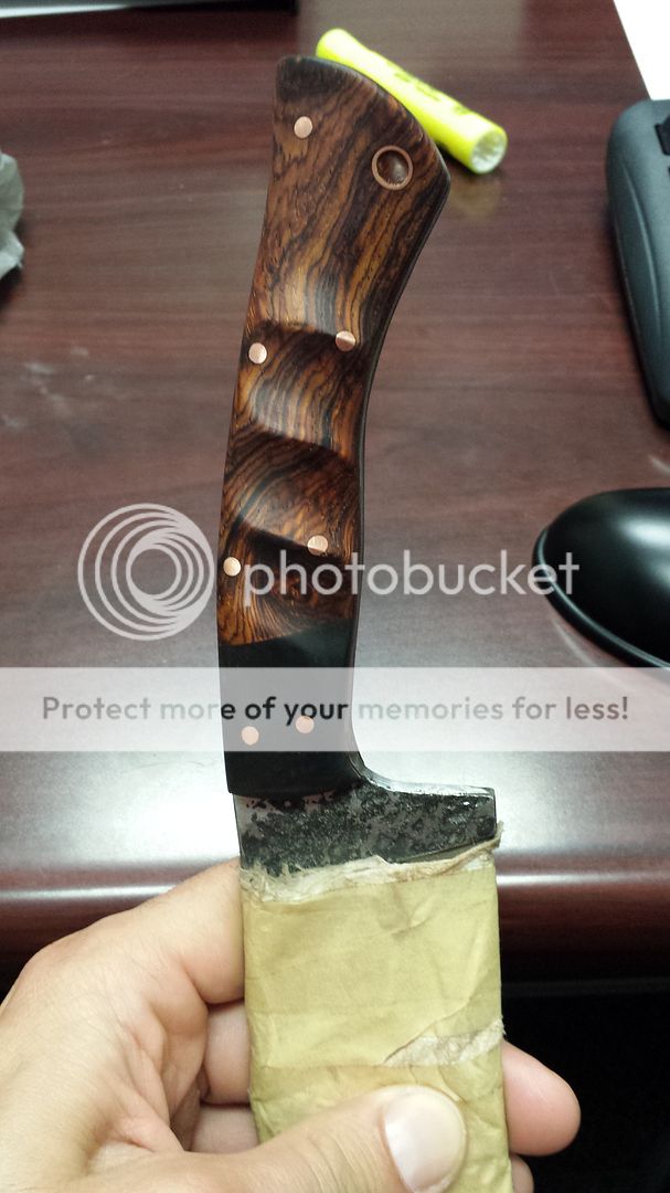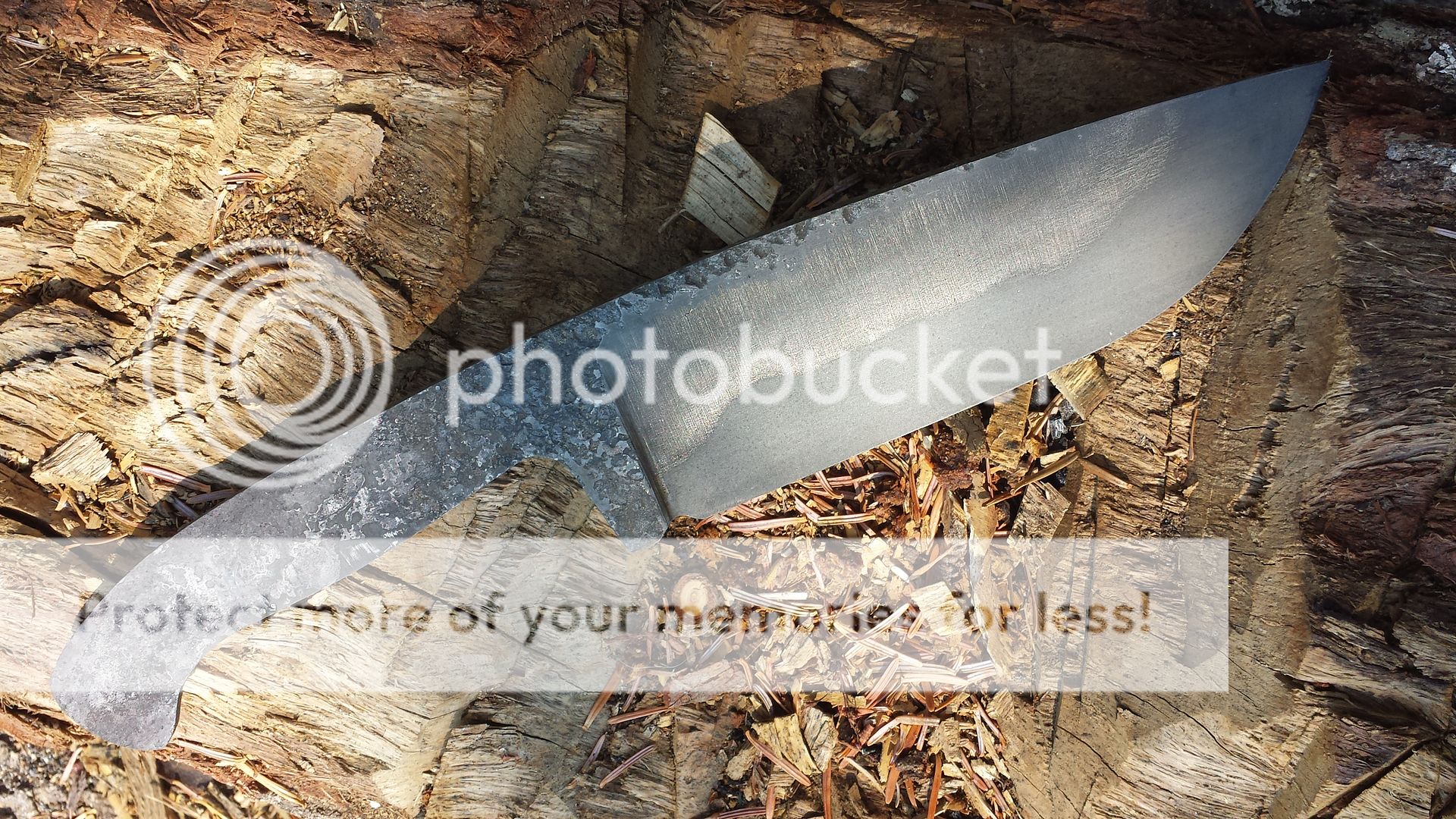 Here is what I came up with. It's shorter than I initially wanted to make it but to keep the weight I wanted, added some to the width. .25" thick spine, the tip is slightly tapered 1.75" back and it has a tapered tang... I did give it a bit of a drop point for tip control and the handle is replicated after a Busse design. I'll drill lanyard holes at the back of the handle and also just behind the plunge line in the lower end of the ricasso. I'm happy with it thus far and the customer is likewise. Being my first camp knife, seems like it's coming along well. Want to make more and really define a best design for myself.