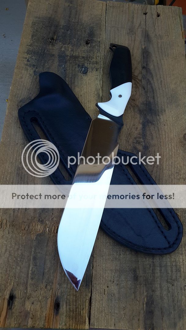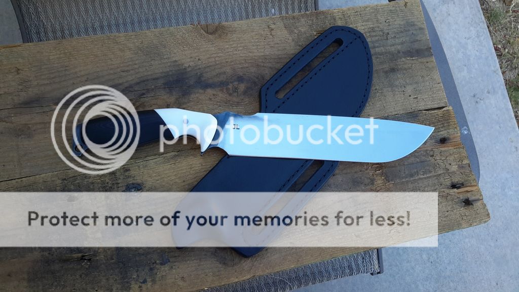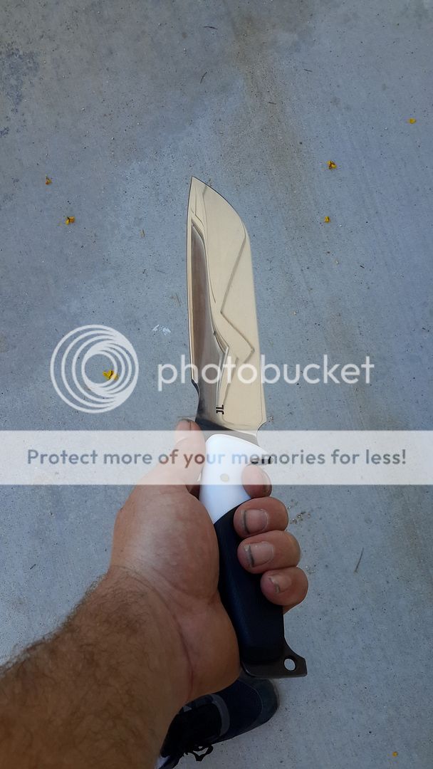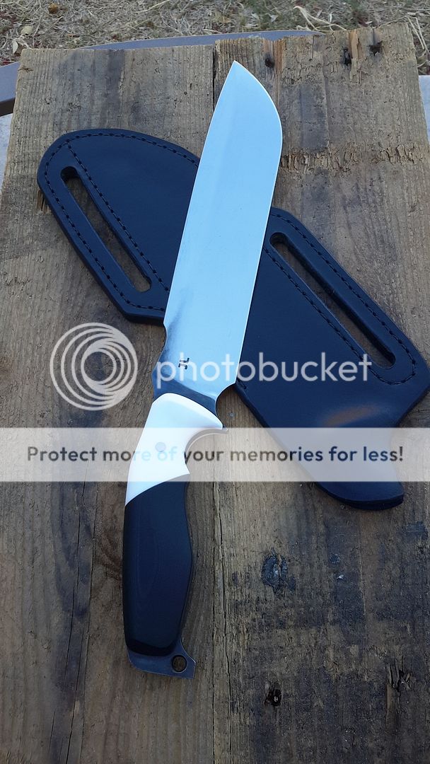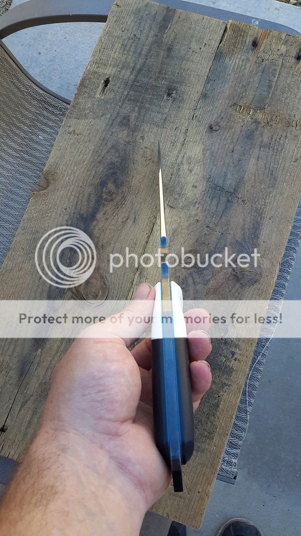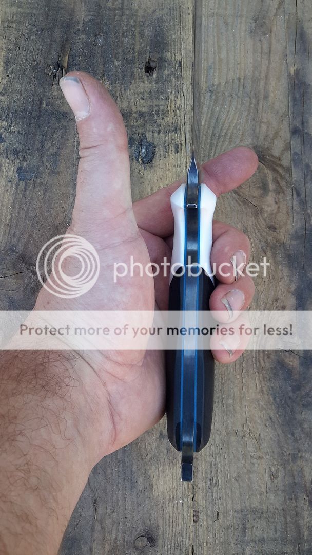 handle is white corian with black g10 with blue g10 liner