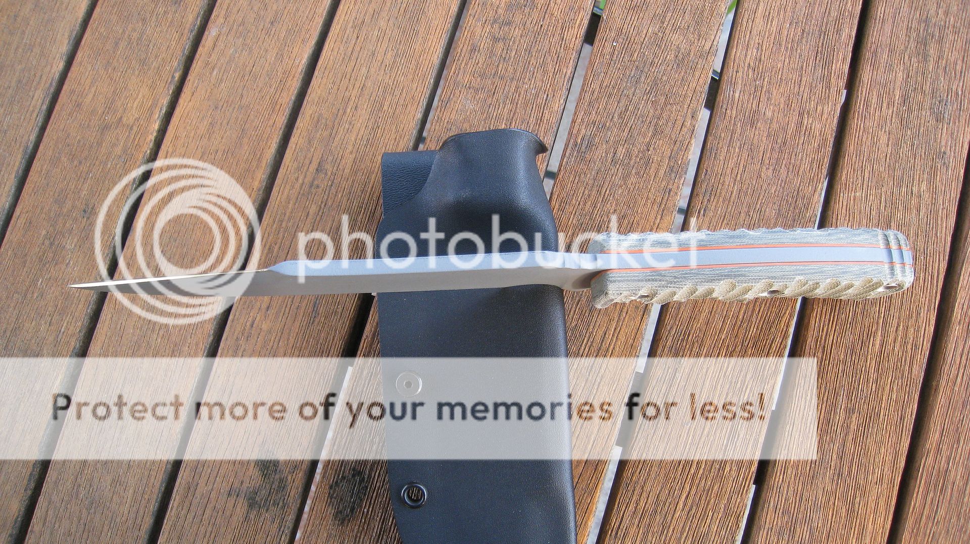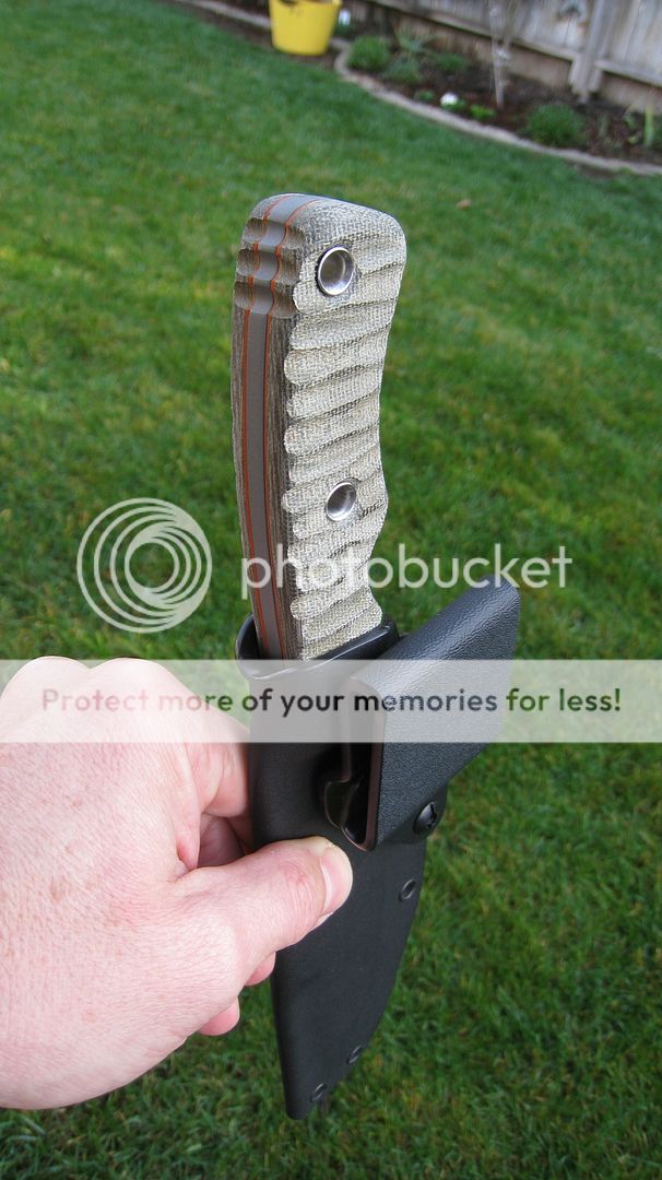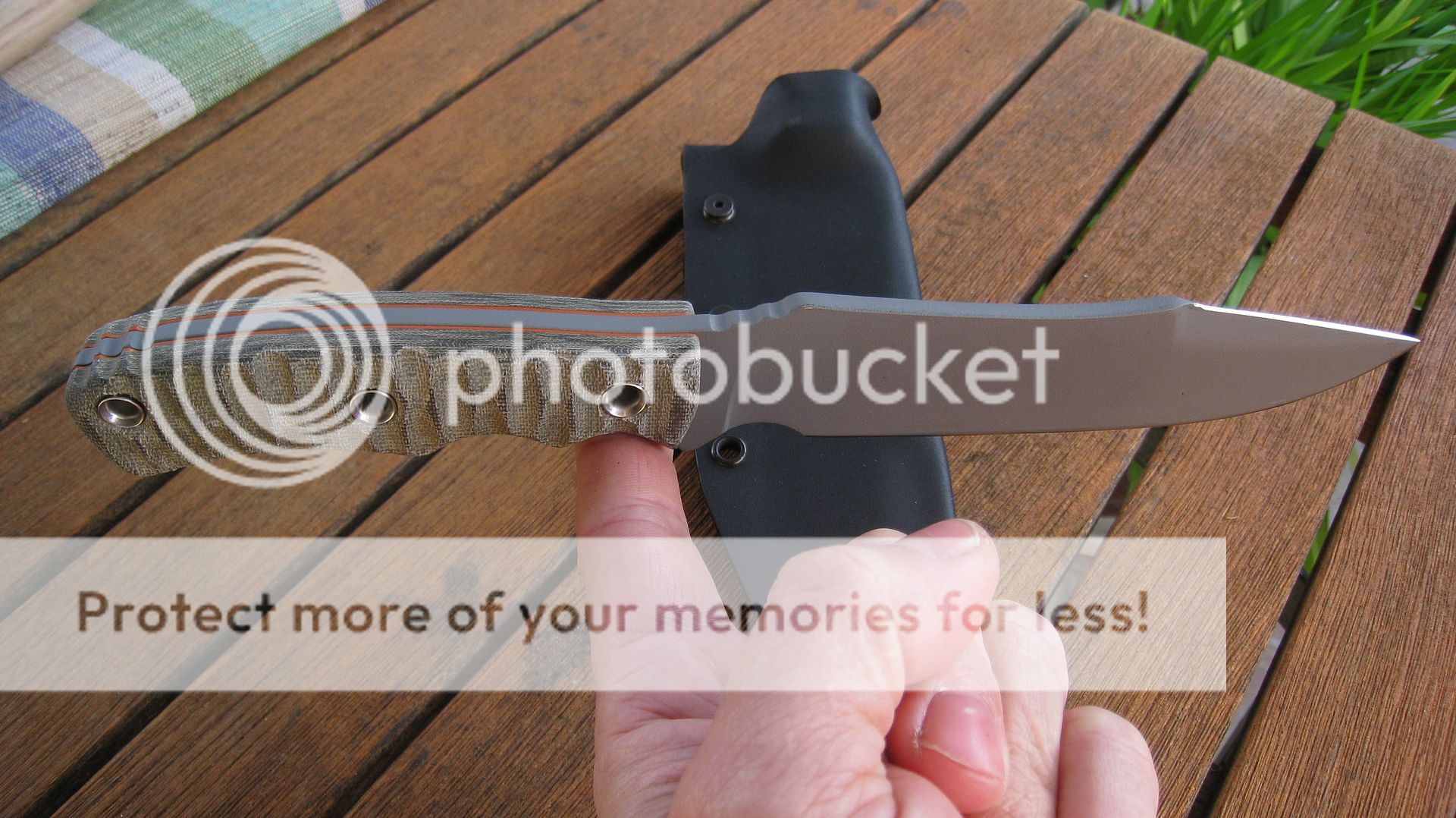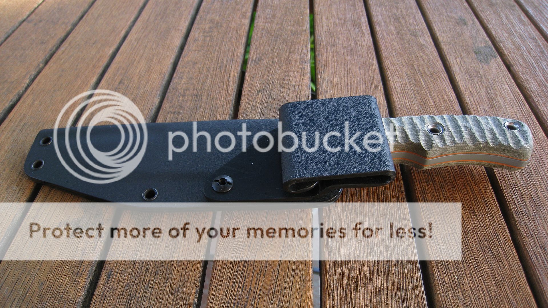 There are couple spots worn in cerakote finish where blade spine touches the sheath, from drawing knife in/out while adjusting the kydex tightness.