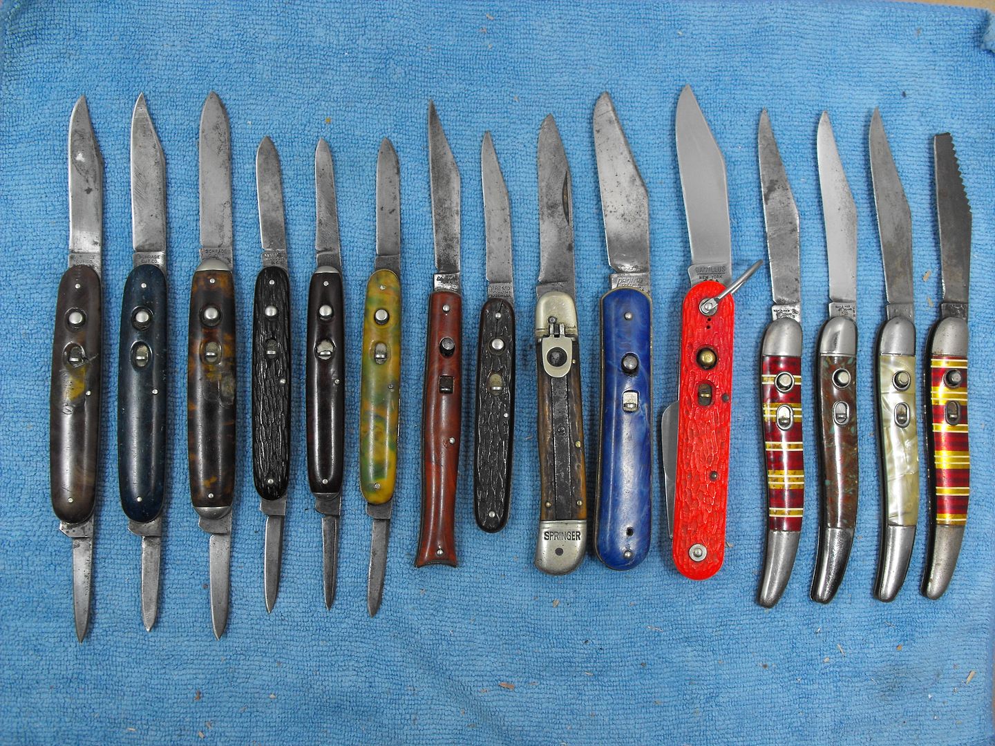 Many German auto/flick knives from the c20th, plenty with Stag. None owned by me unfortunately, do have a large yellow Delrin Mikov but it's an ugly hulk and noisy