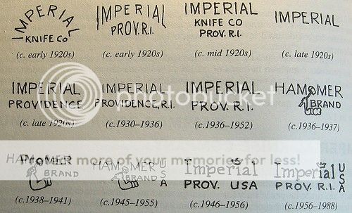 I have seen pictures of all of the tang stamps imperial has, but on the knife I have, the tang stamp seems to be different than the others. It's a crowned Imperial, with PROV. RI. USA underneath. I think it's from the 40s or 50s but I'm not sure, can you help?