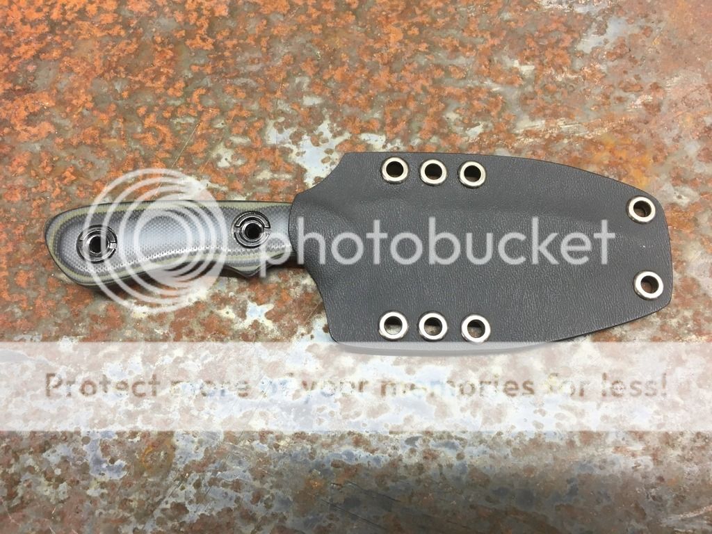 Kydex sheath with gun metal eyelets. Sized for small tek-lock. Drain hole.