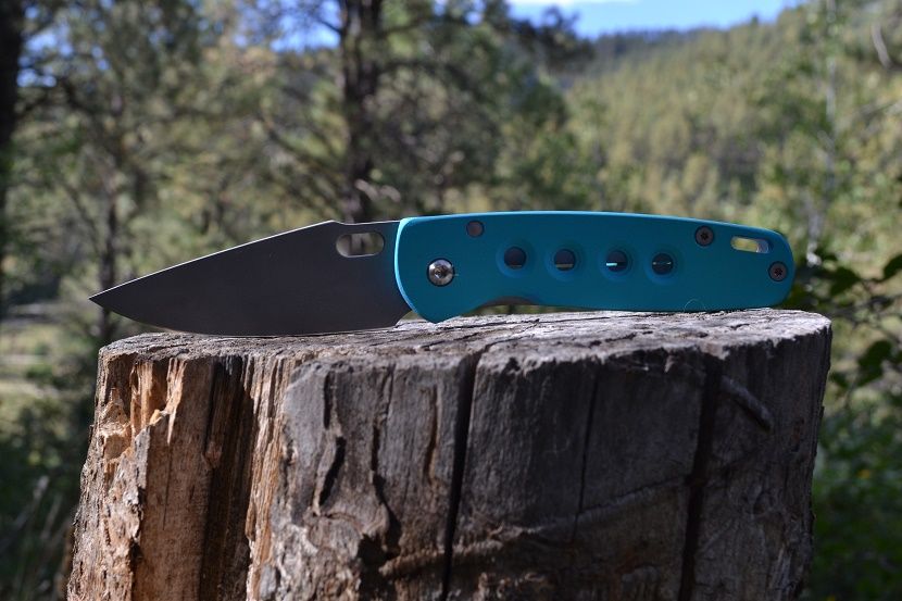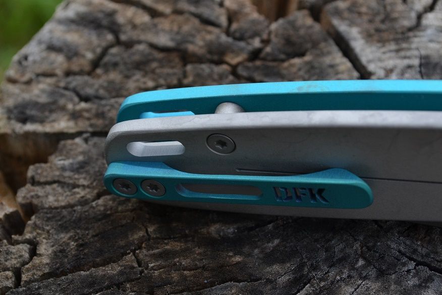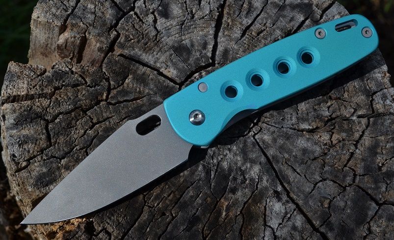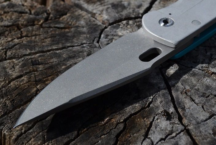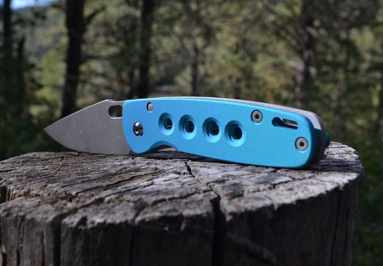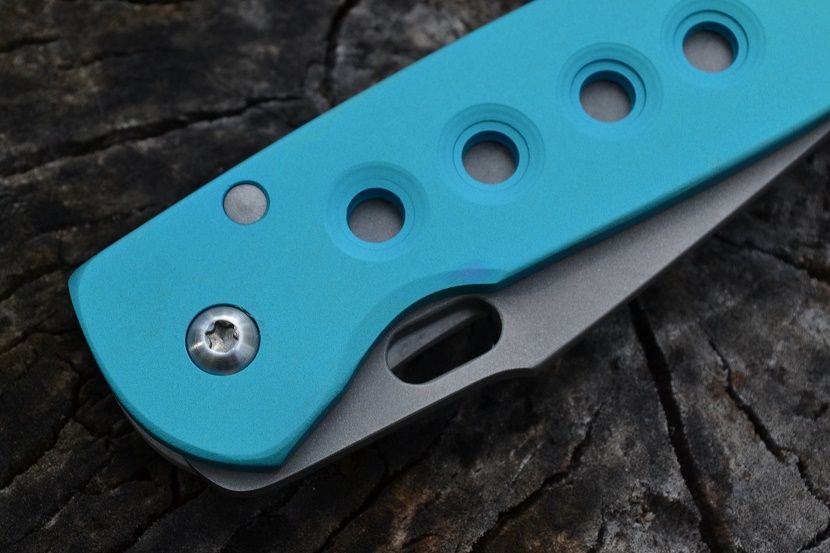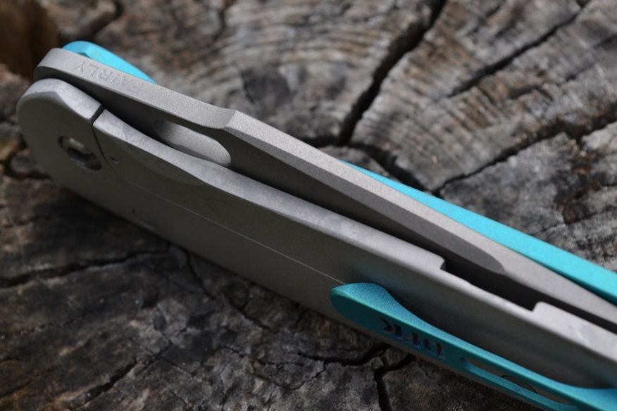 Caribbean Blue Frame Side - Brushed/Etched Lock Side - Bling Blast Blade - Caribbean Blue Clip